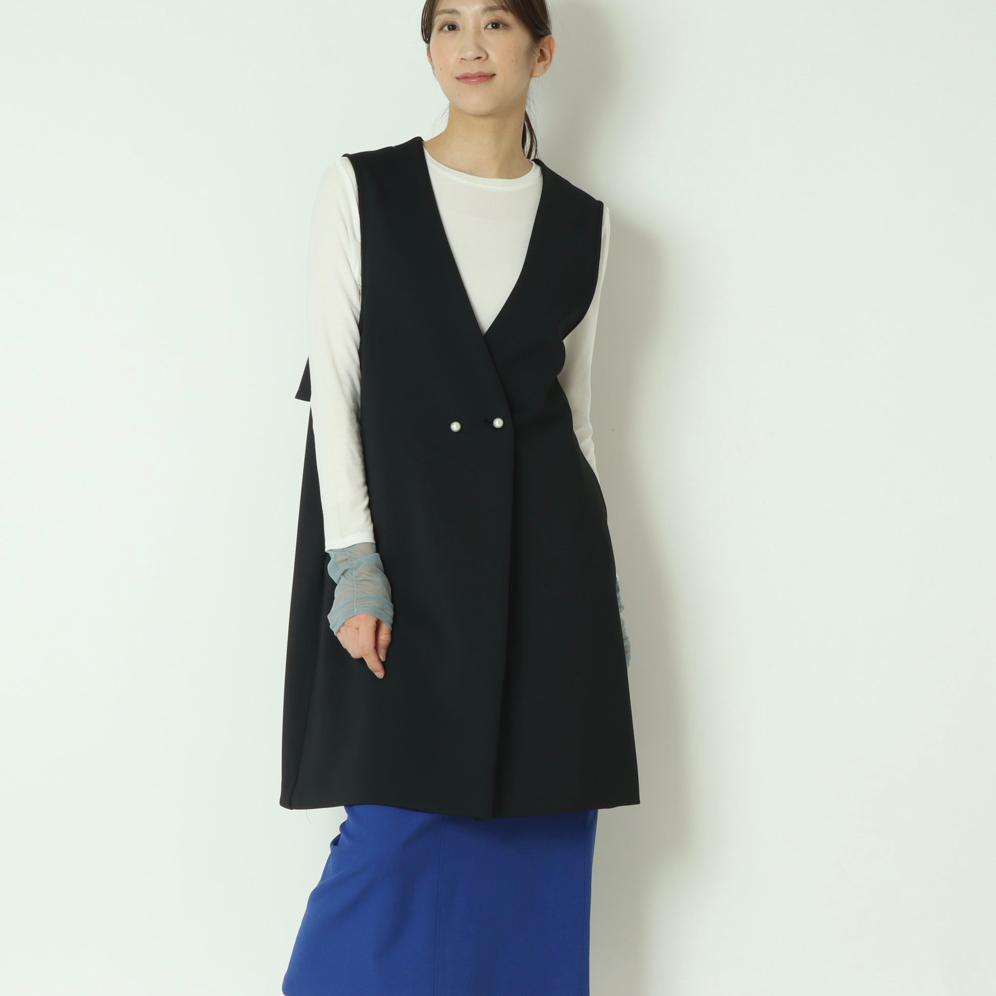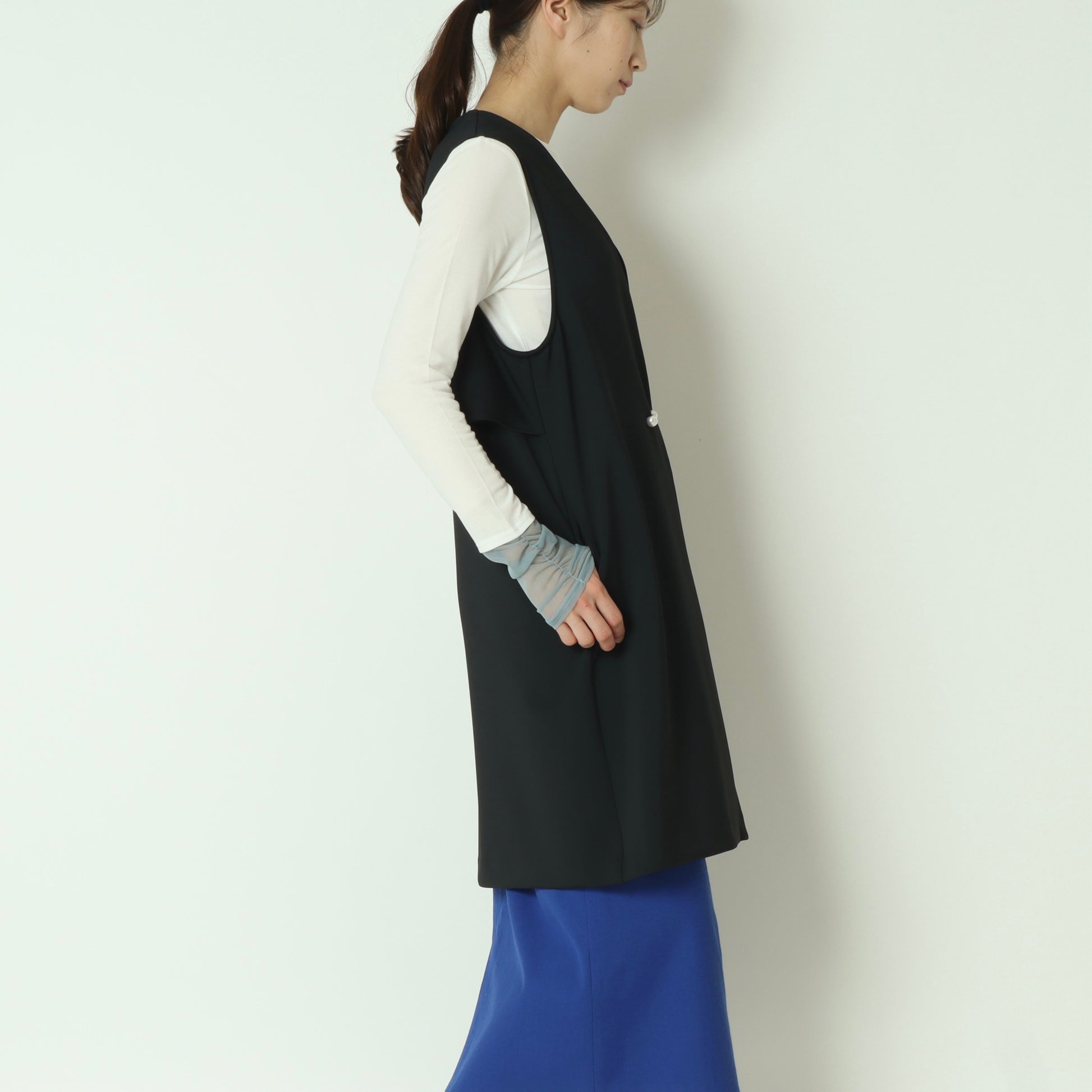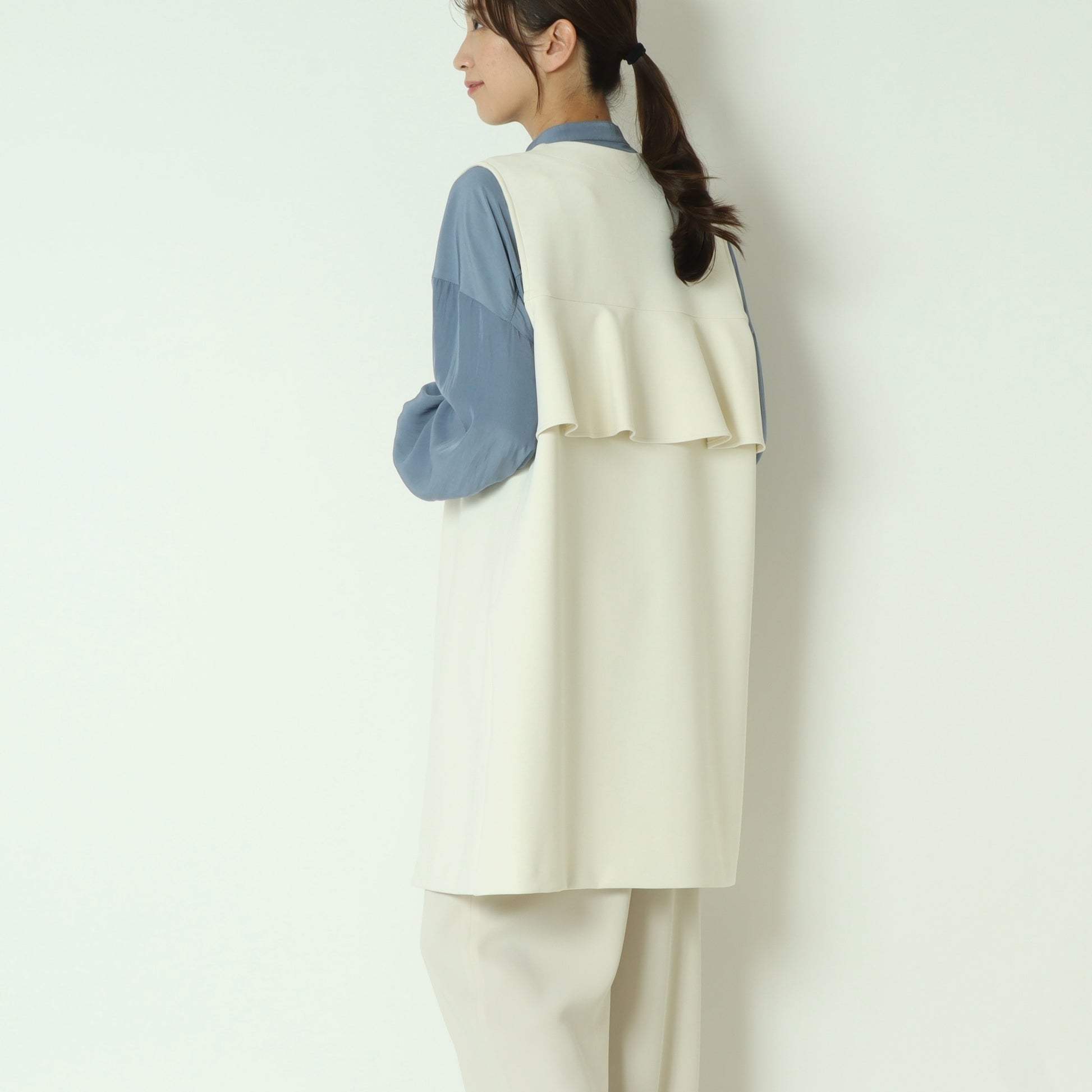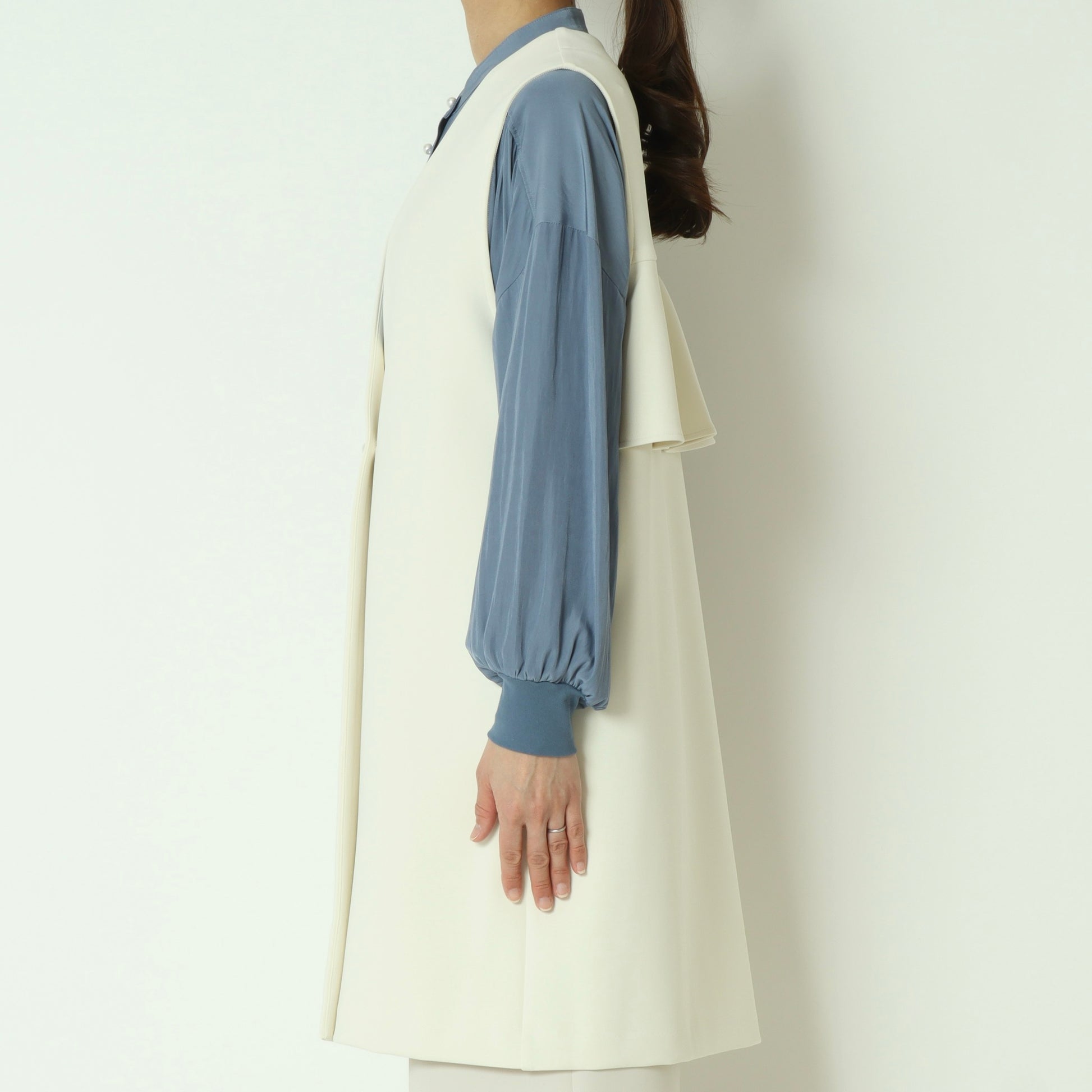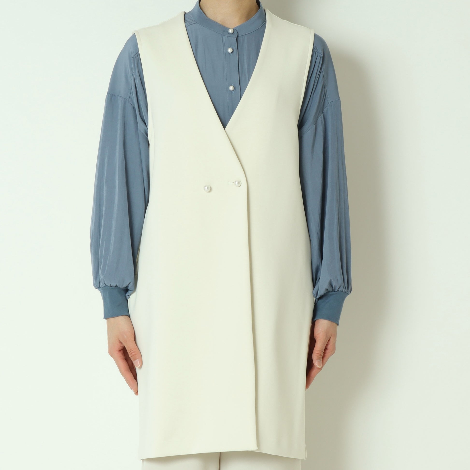 ブラウスやニットからカットソーまで、さっと羽織るだけでスタイリングが洗練される一枚です。