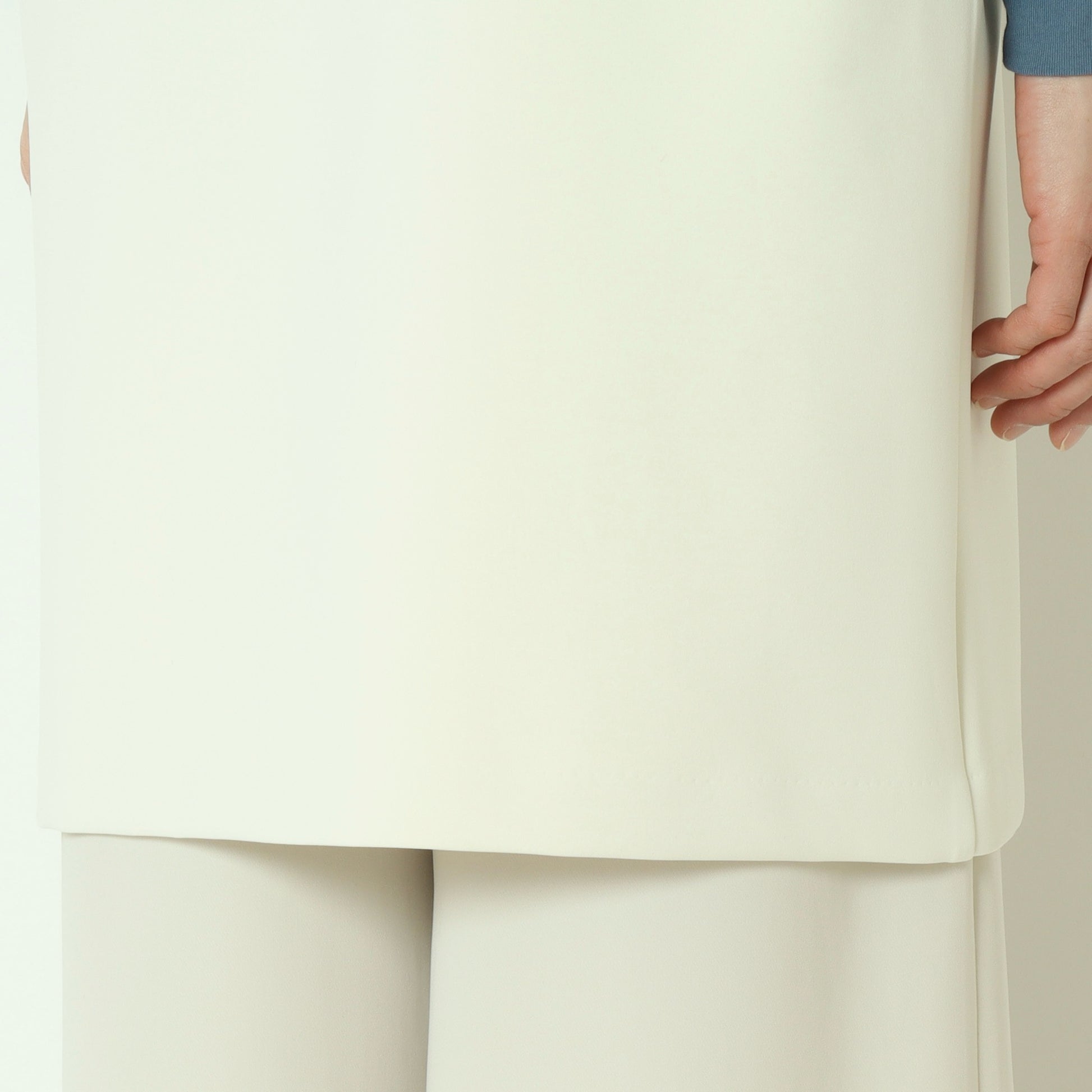 生地にハリ感があるのでボディーラインを拾わず、ヒップを隠してくれるミドル丈も嬉しいポイント。