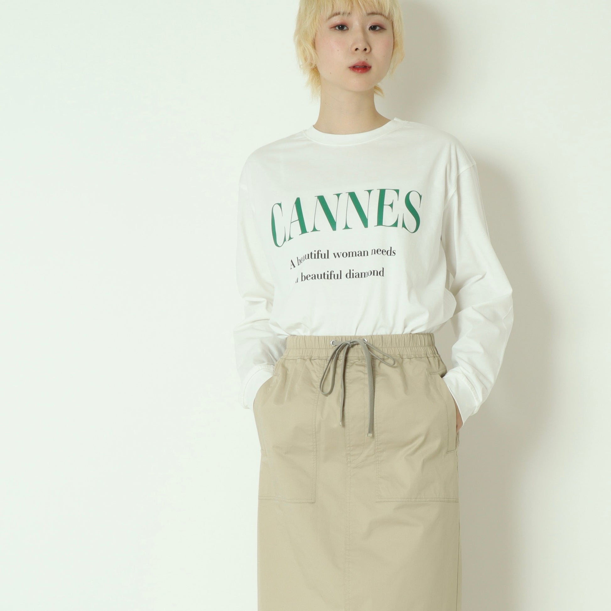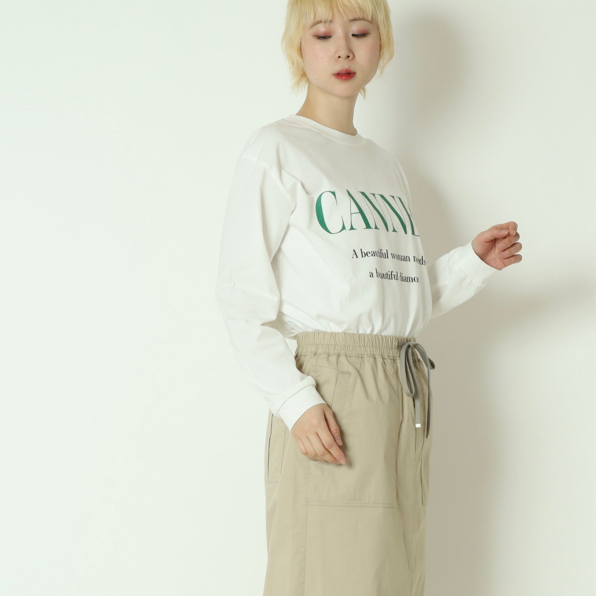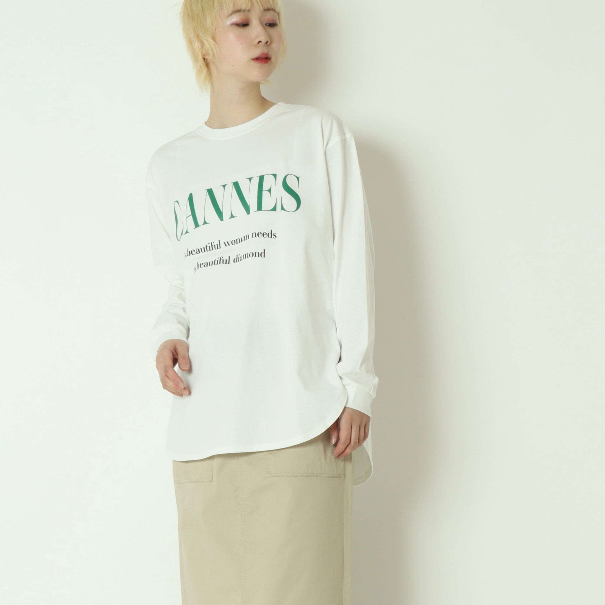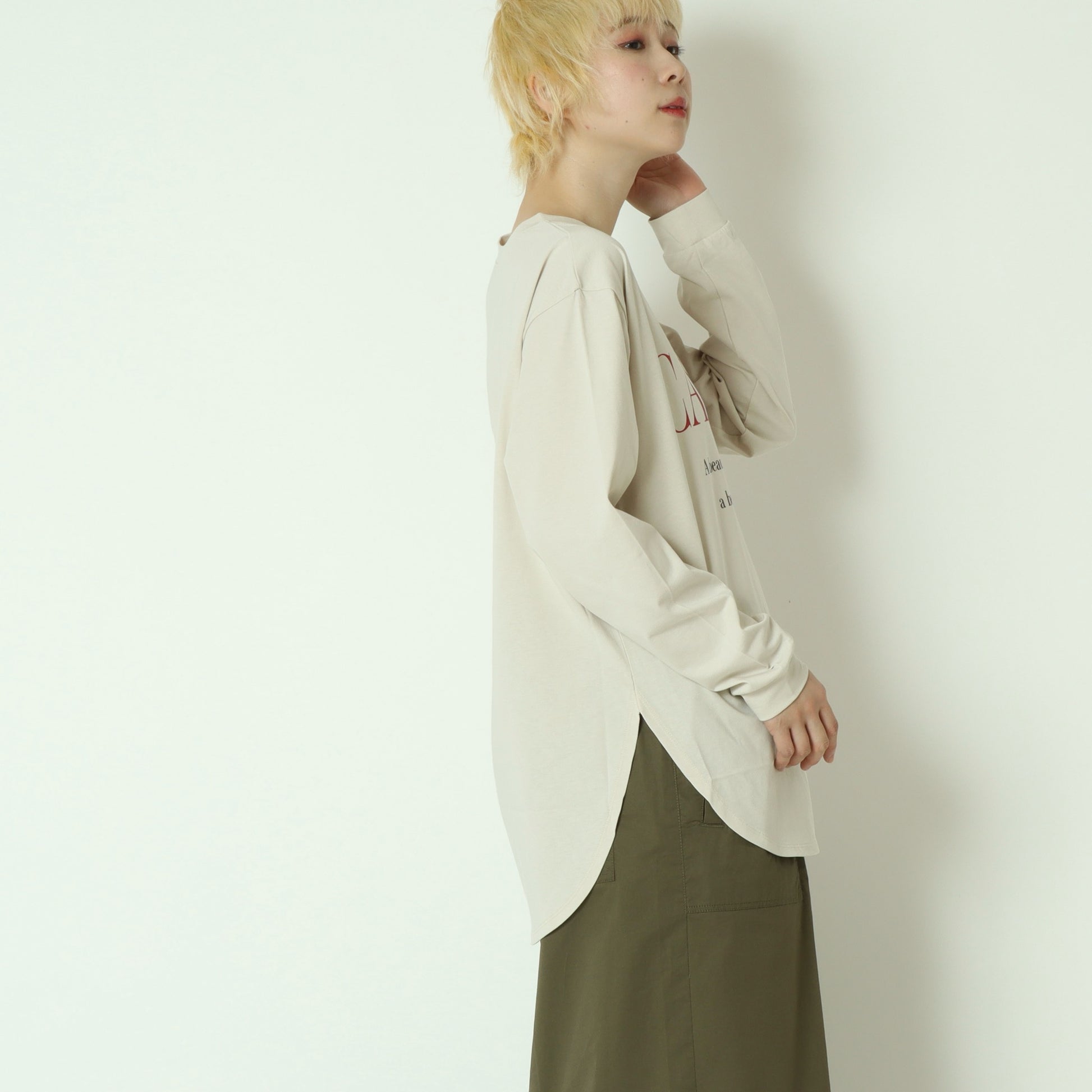 バイカラーのフロントロゴが抜け感のある大人カジュアルカットソー。