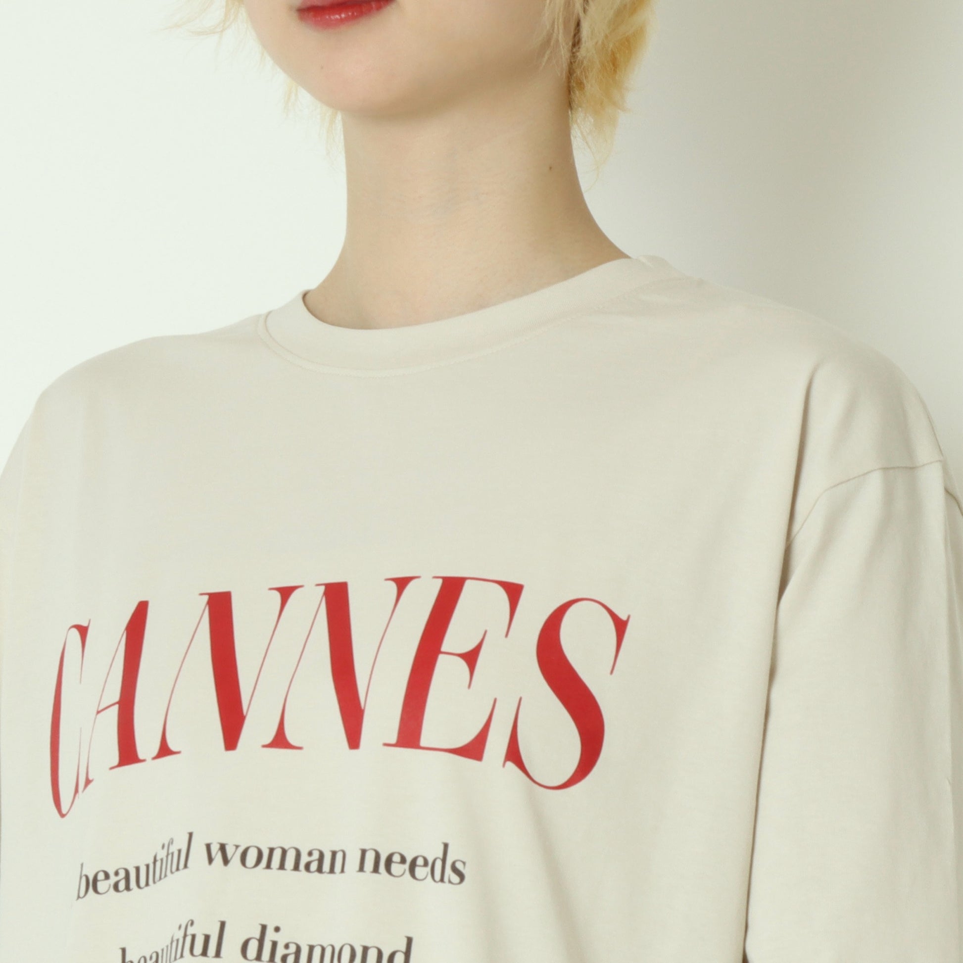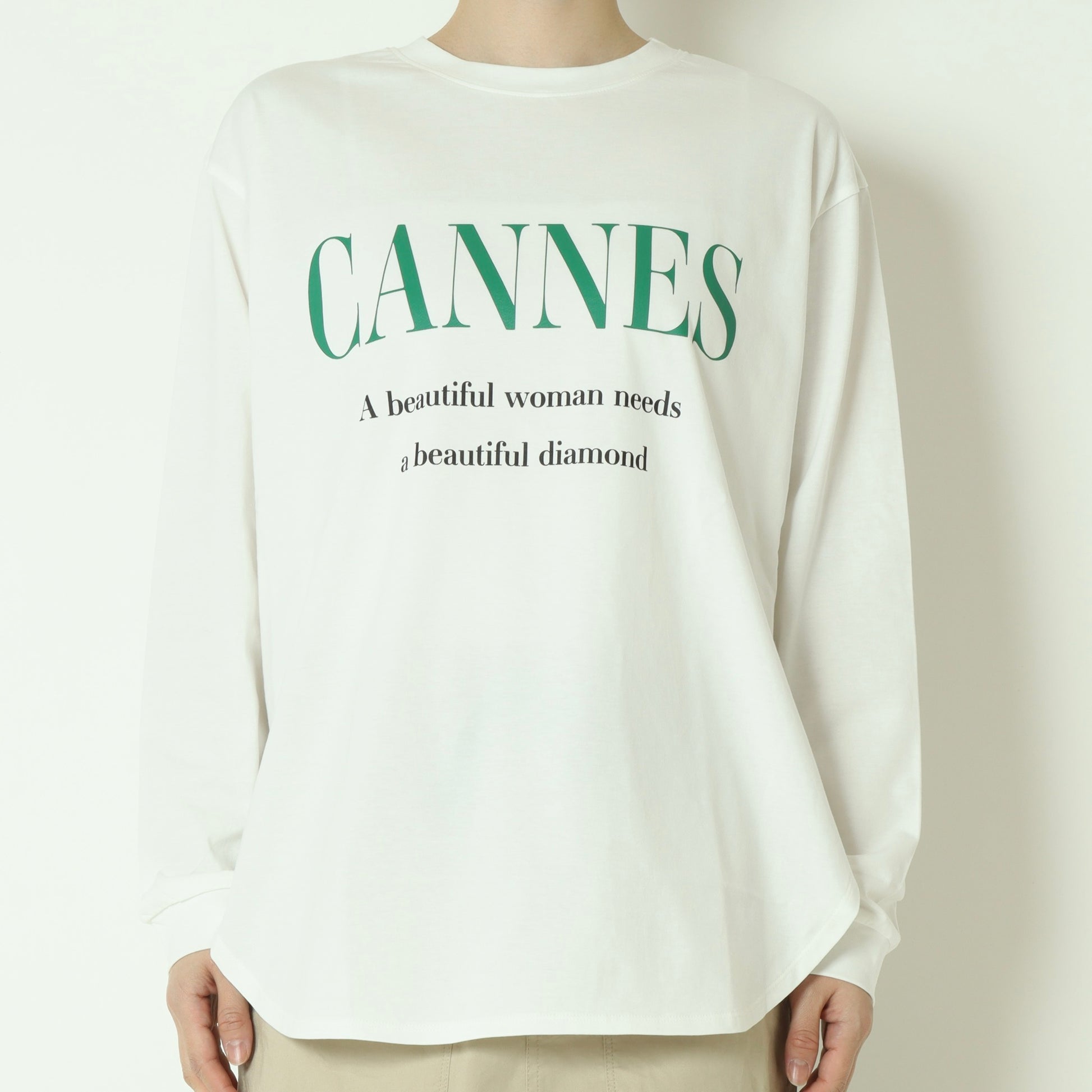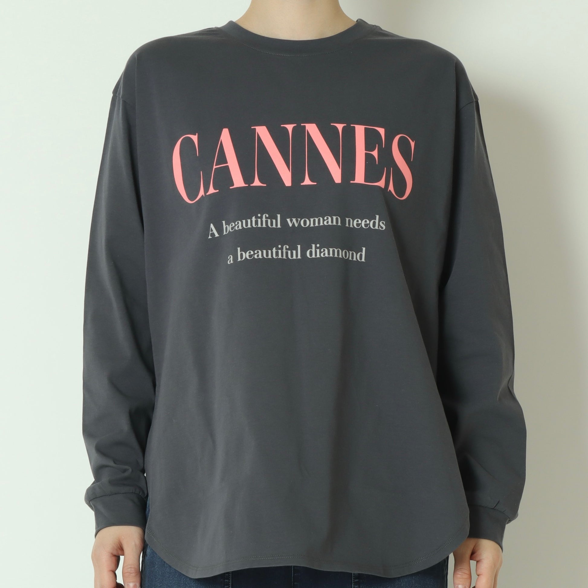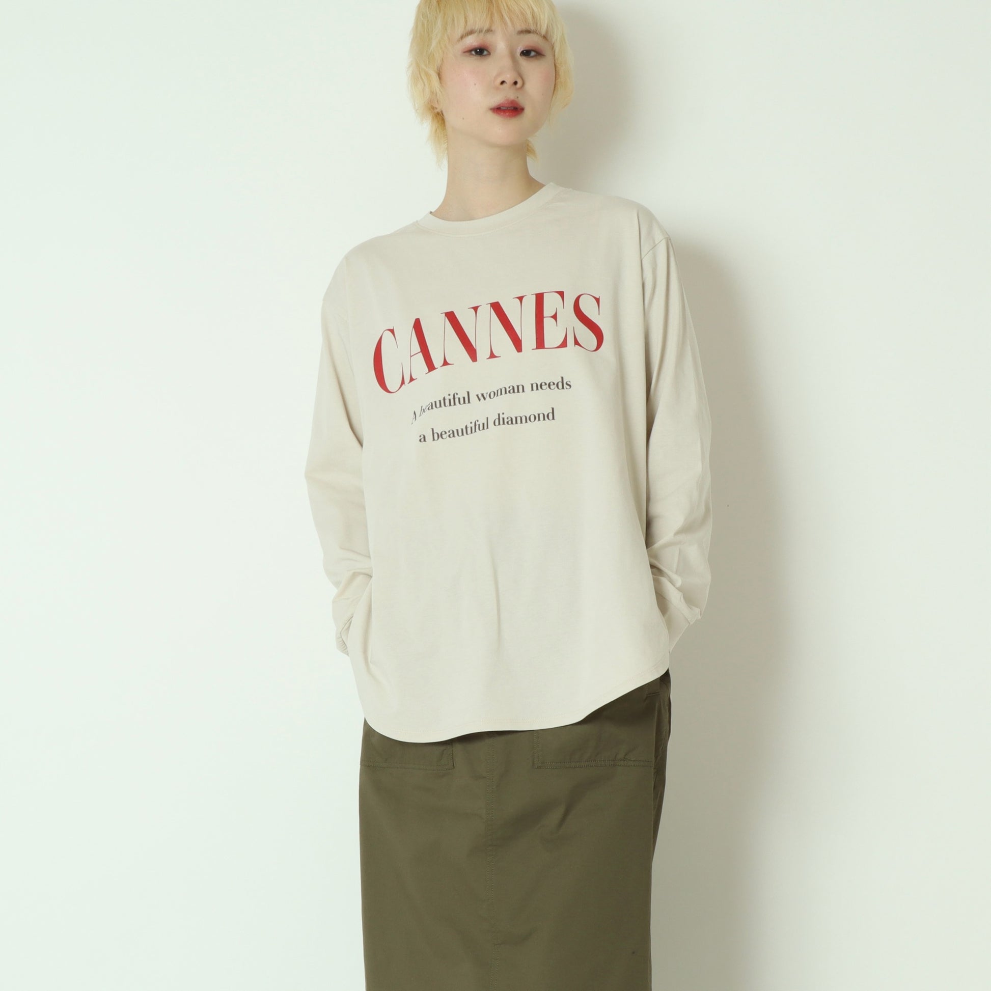 バイカラーのフロントロゴが抜け感のある大人カジュアルカットソー。