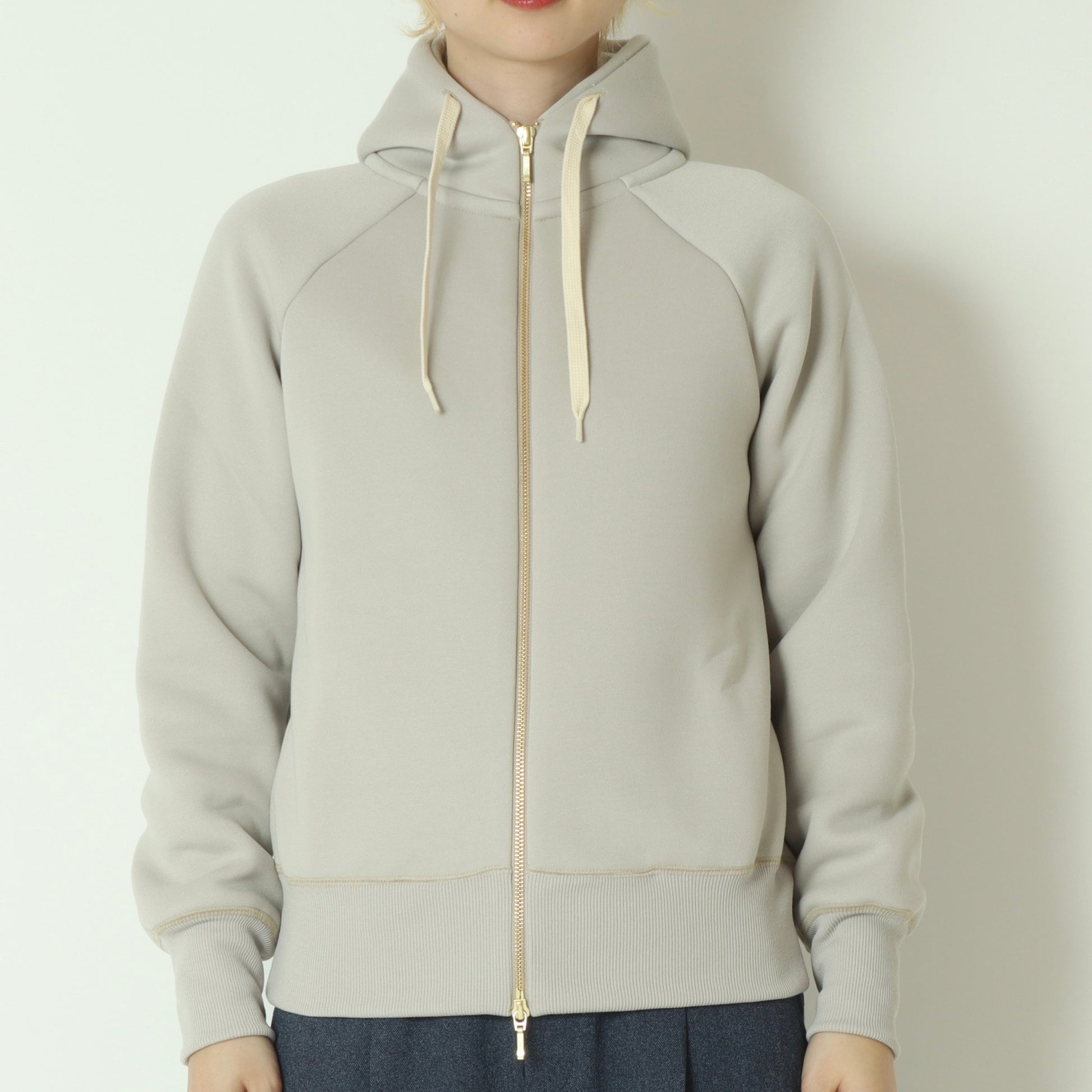 程よいハリ感と滑らかな肌触りが魅力のジップアップフーディー。