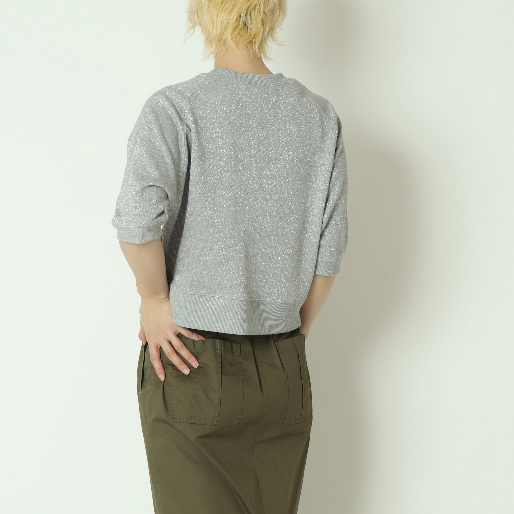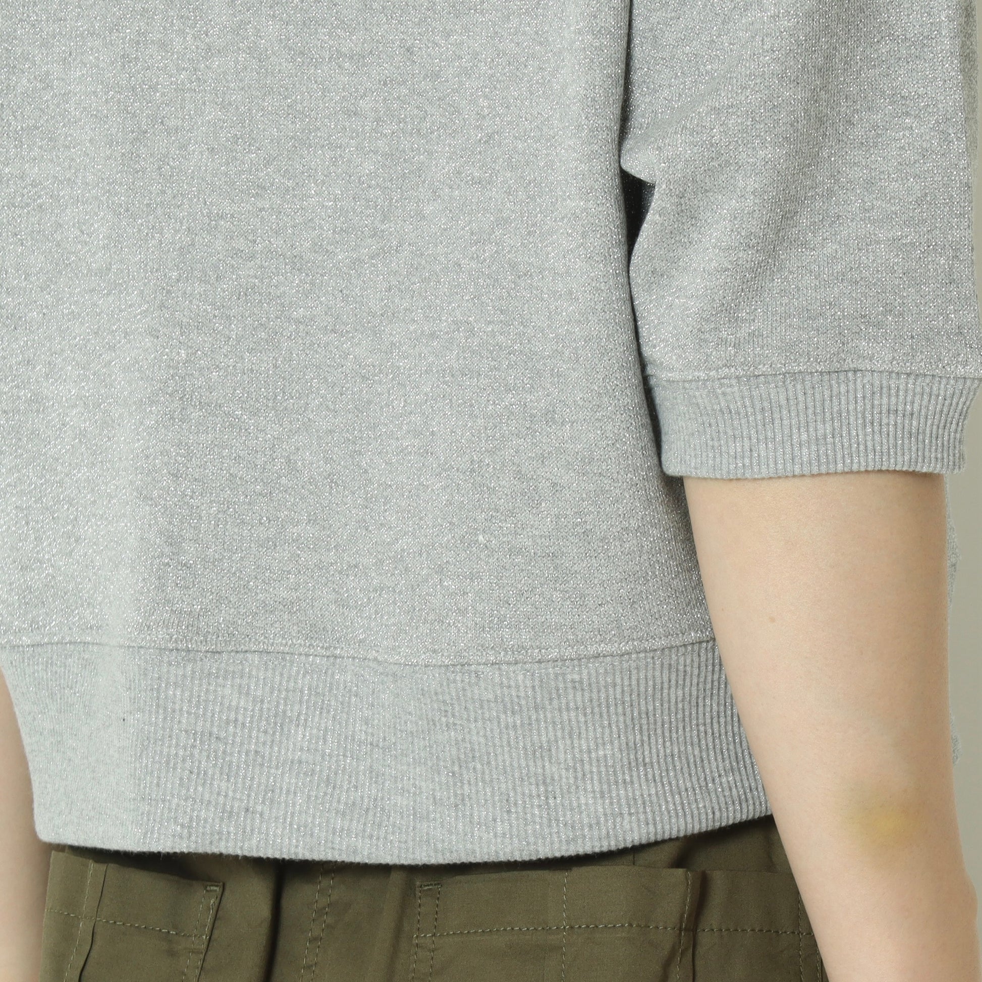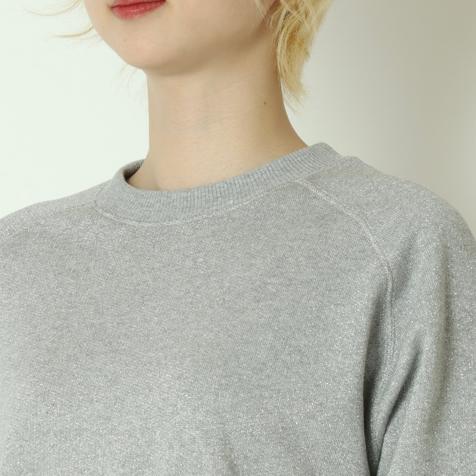 スウェット地を編む撚り糸にラメ糸をブレンドする事で、上品なグリッター感とカジュアルさを兼ね備えた一着に◎