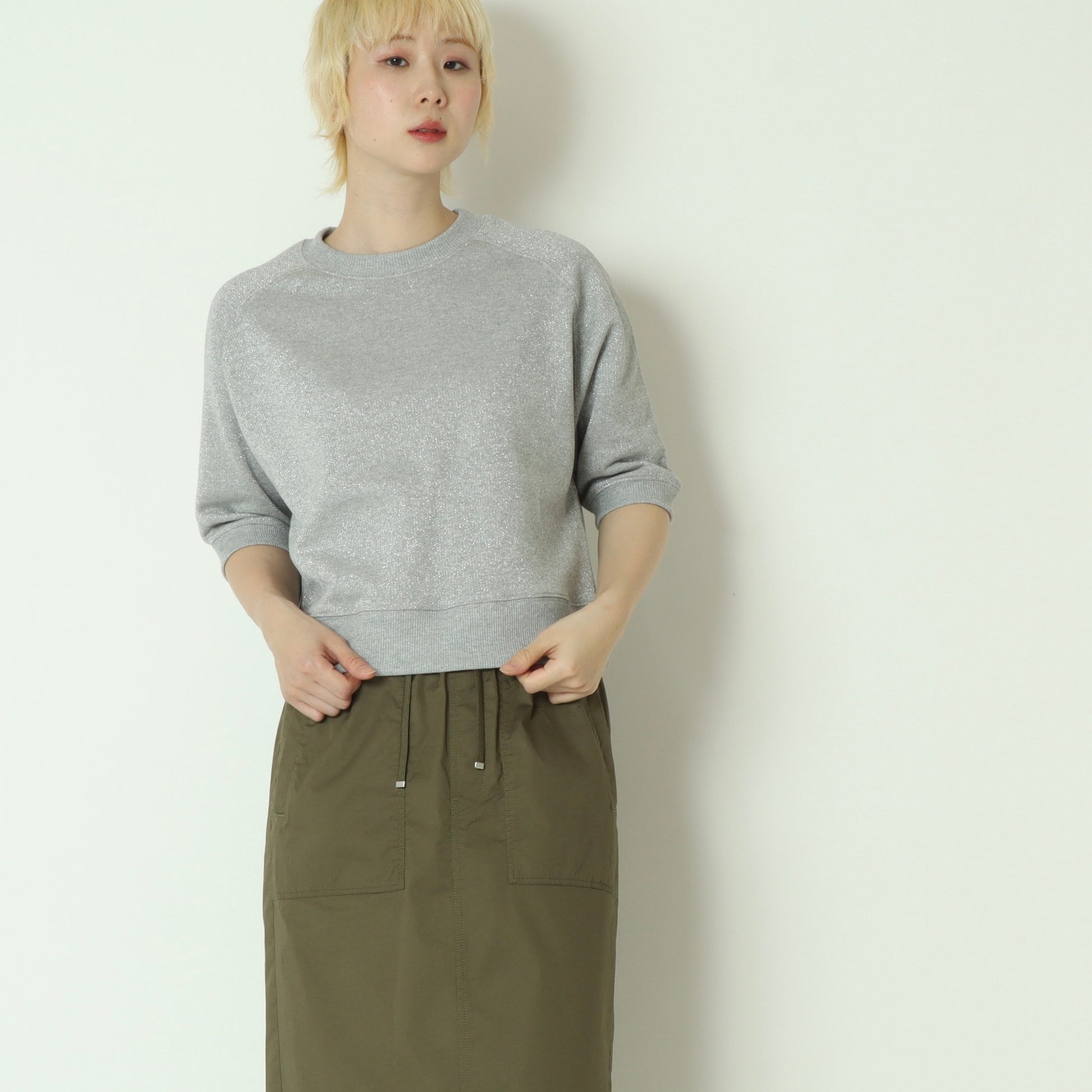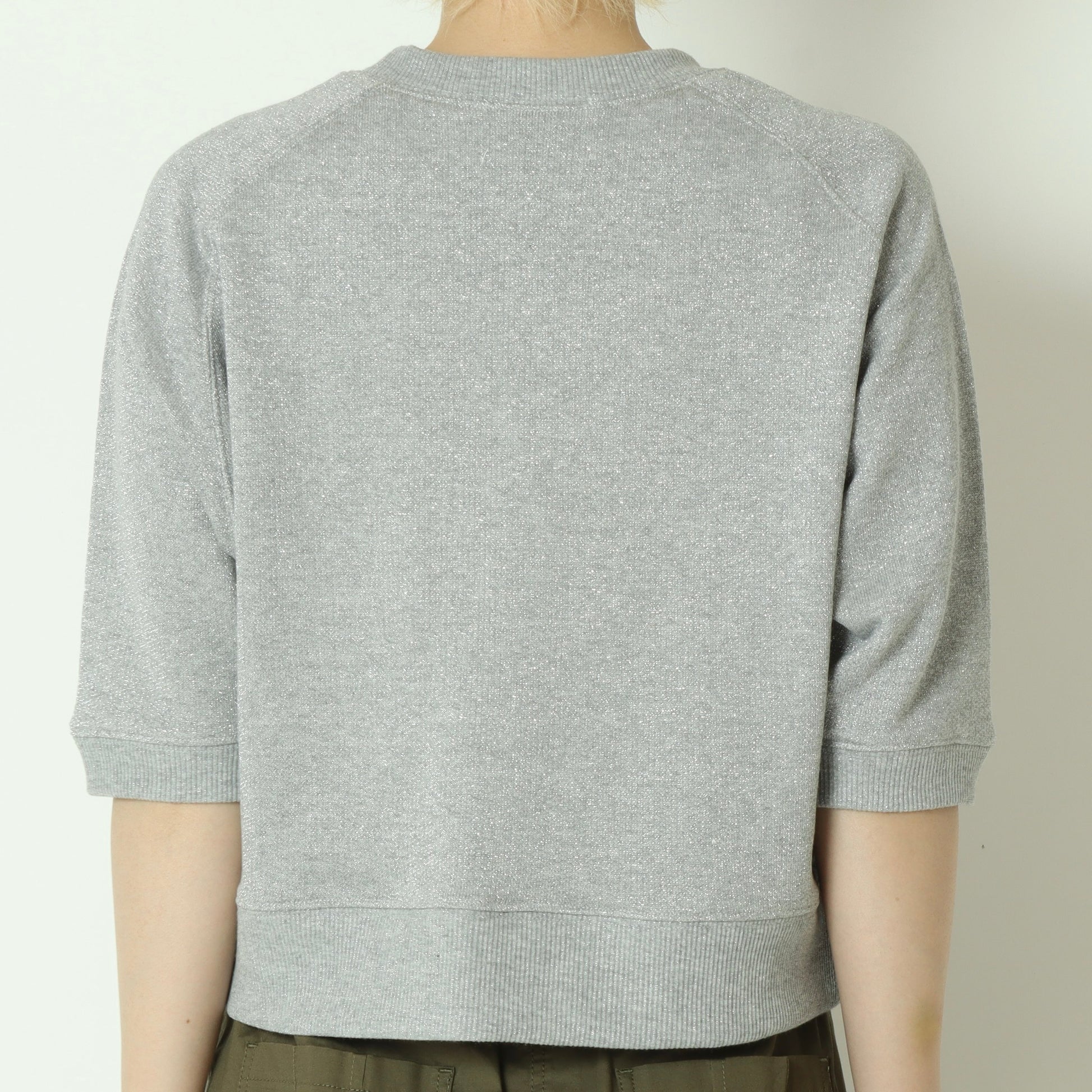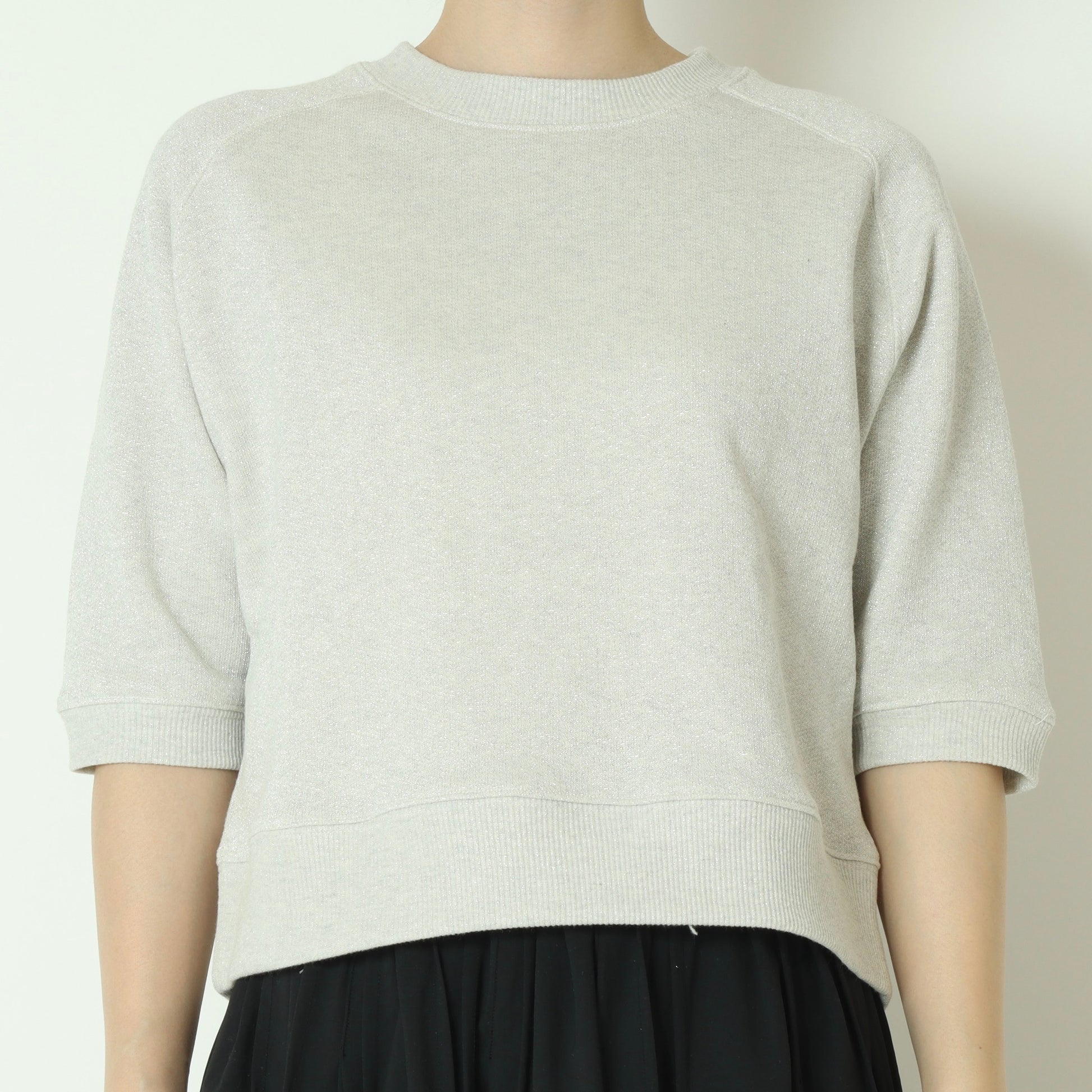 スウェット地を編む撚り糸にラメ糸をブレンドする事で、上品なグリッター感とカジュアルさを兼ね備えた一着に◎