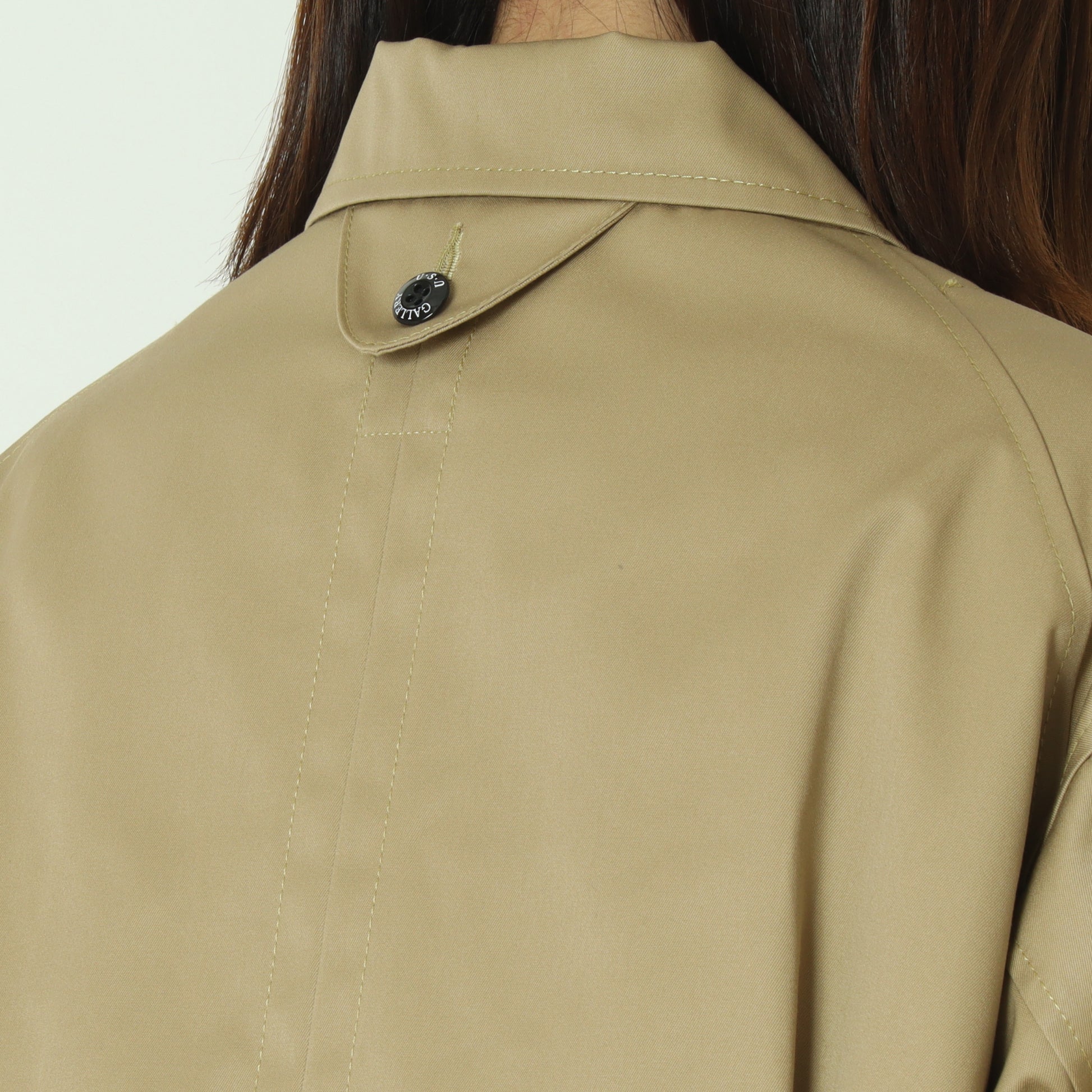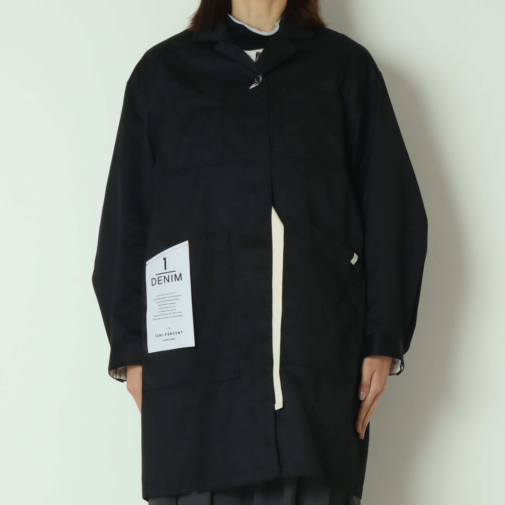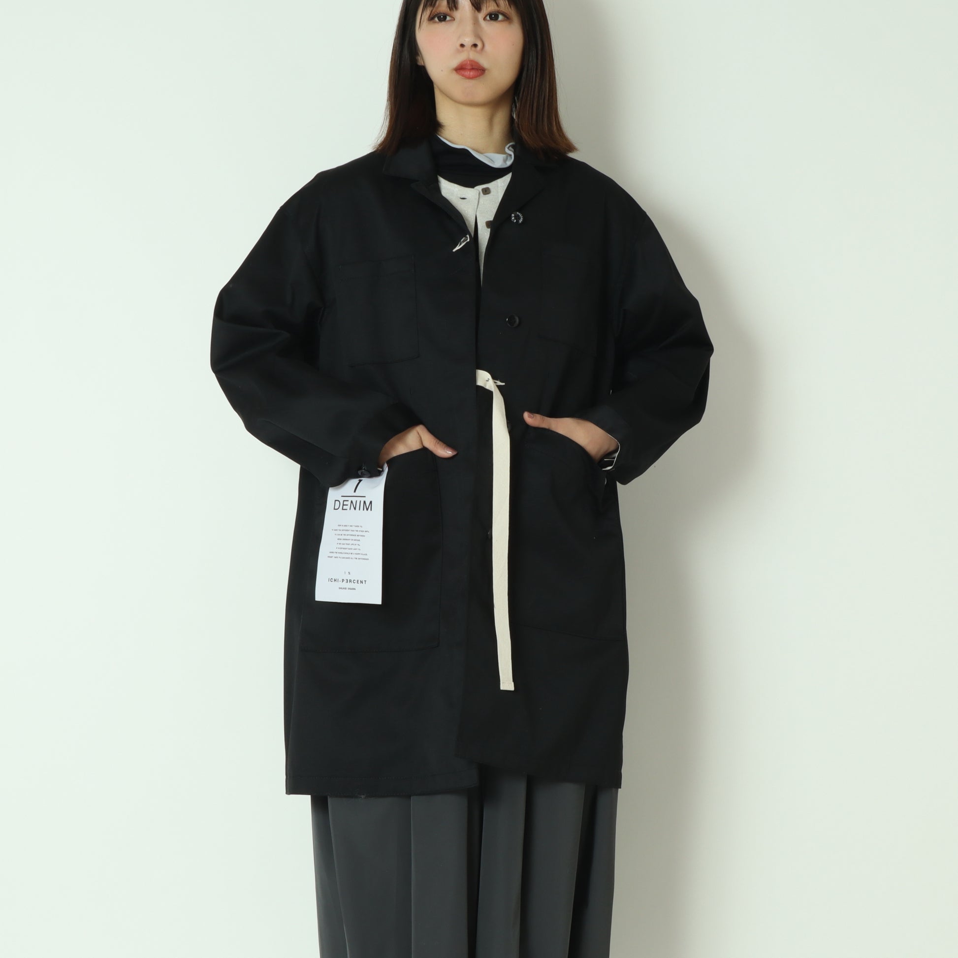 内側のストラップ紐を使用すれば、前を開けたままでも留めて着られる仕様になっています。