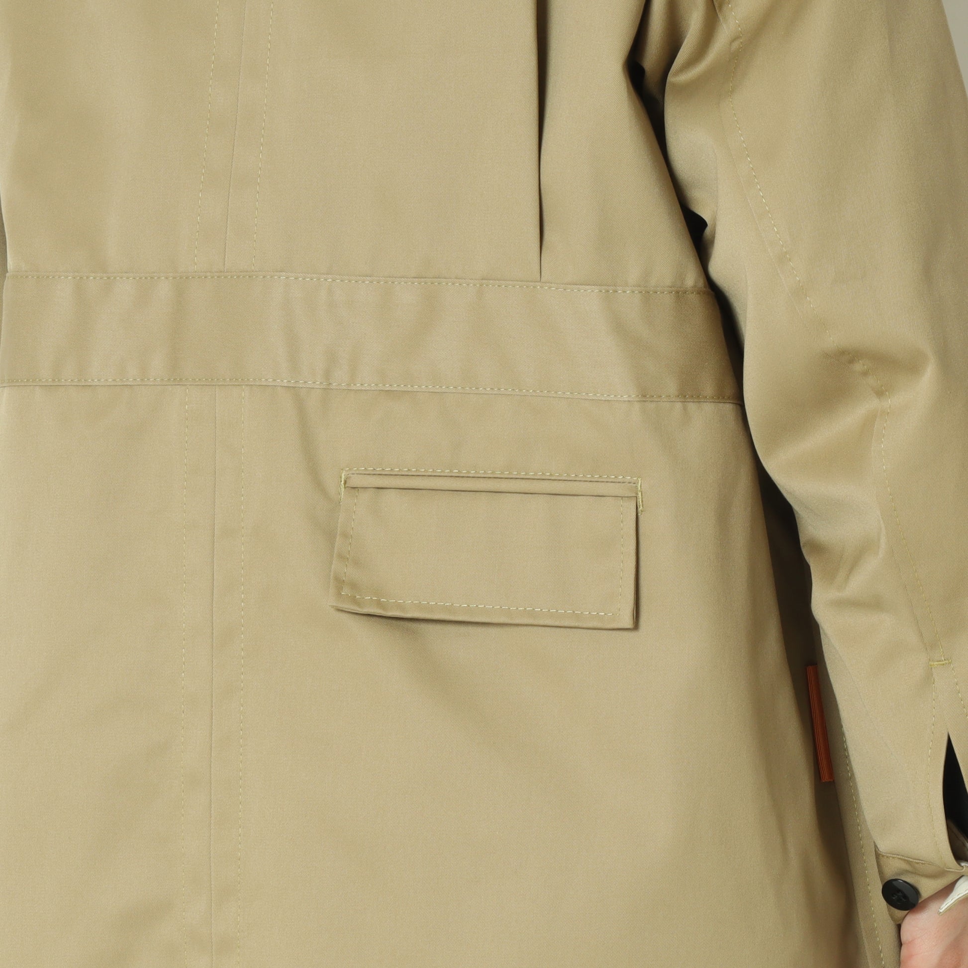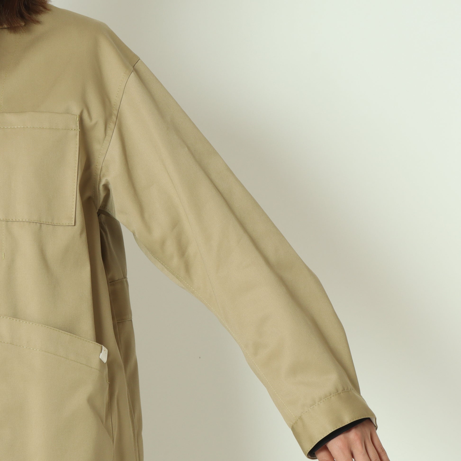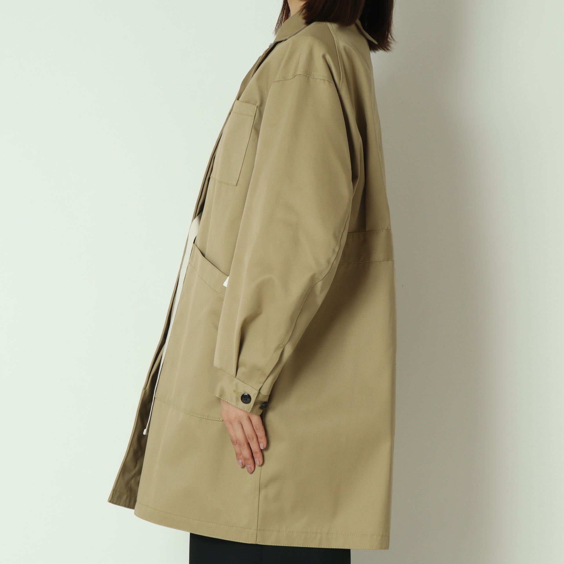 大きめのポケットと直線的なシルエットは、ワーク感を感じさせつつ、着用するとクリーンで洗練された印象に◎