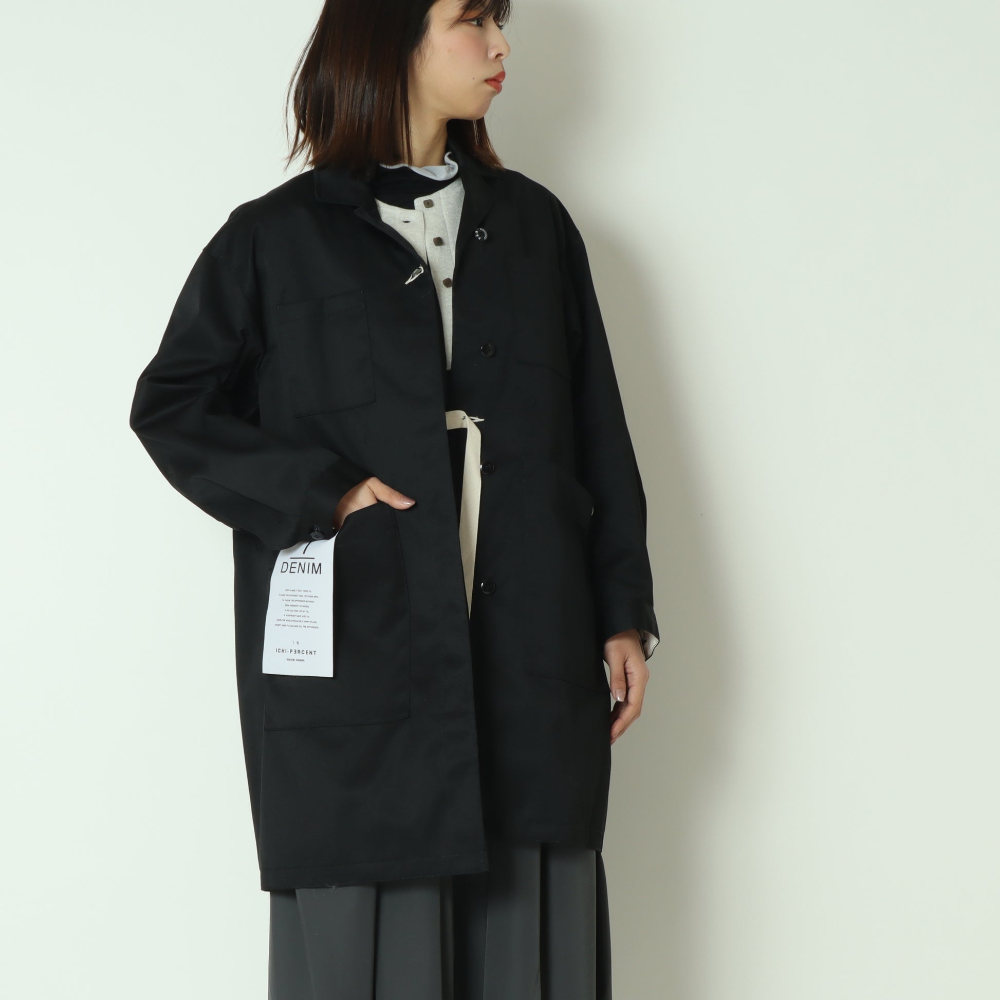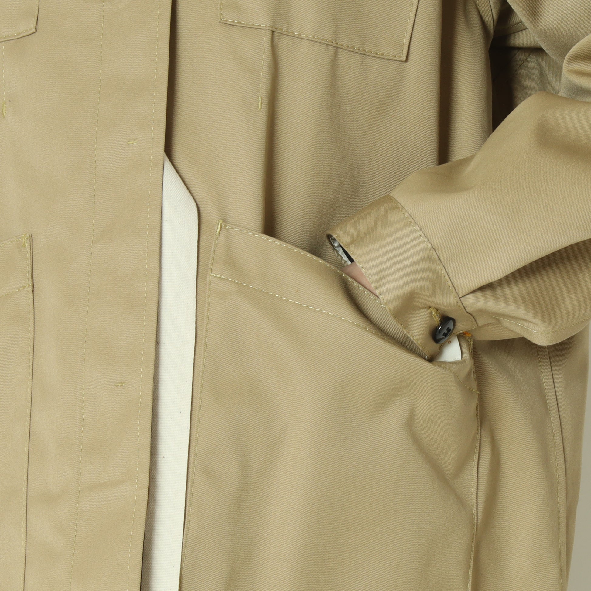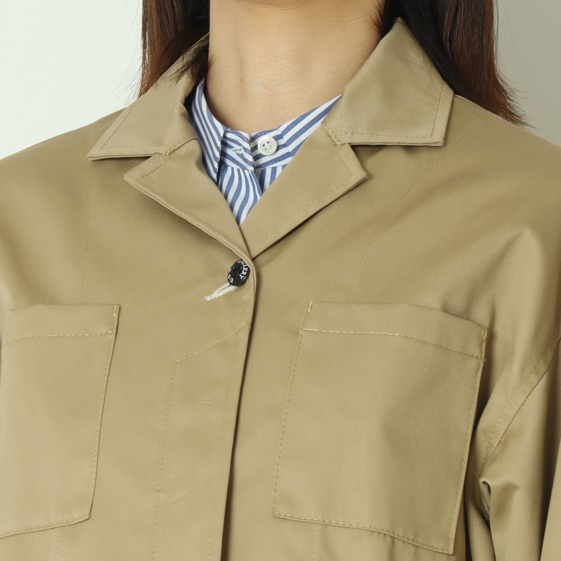 大きめのポケットと直線的なシルエットは、ワーク感を感じさせつつ、着用するとクリーンで洗練された印象に◎
