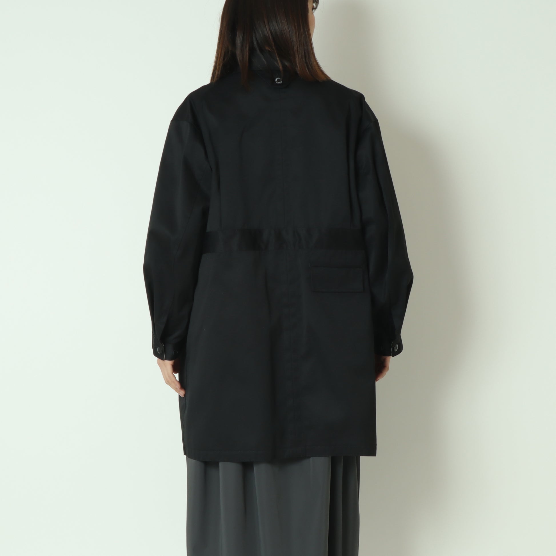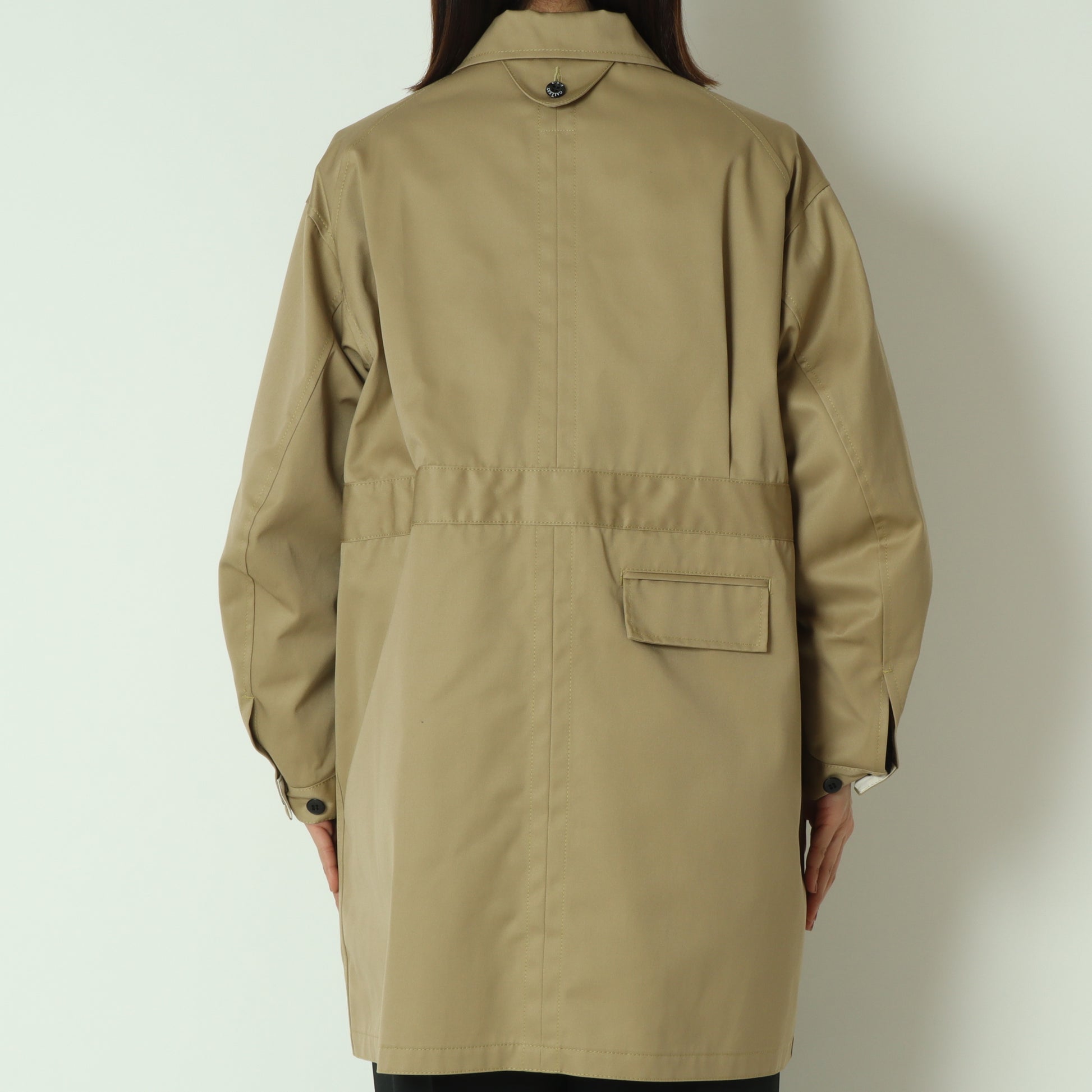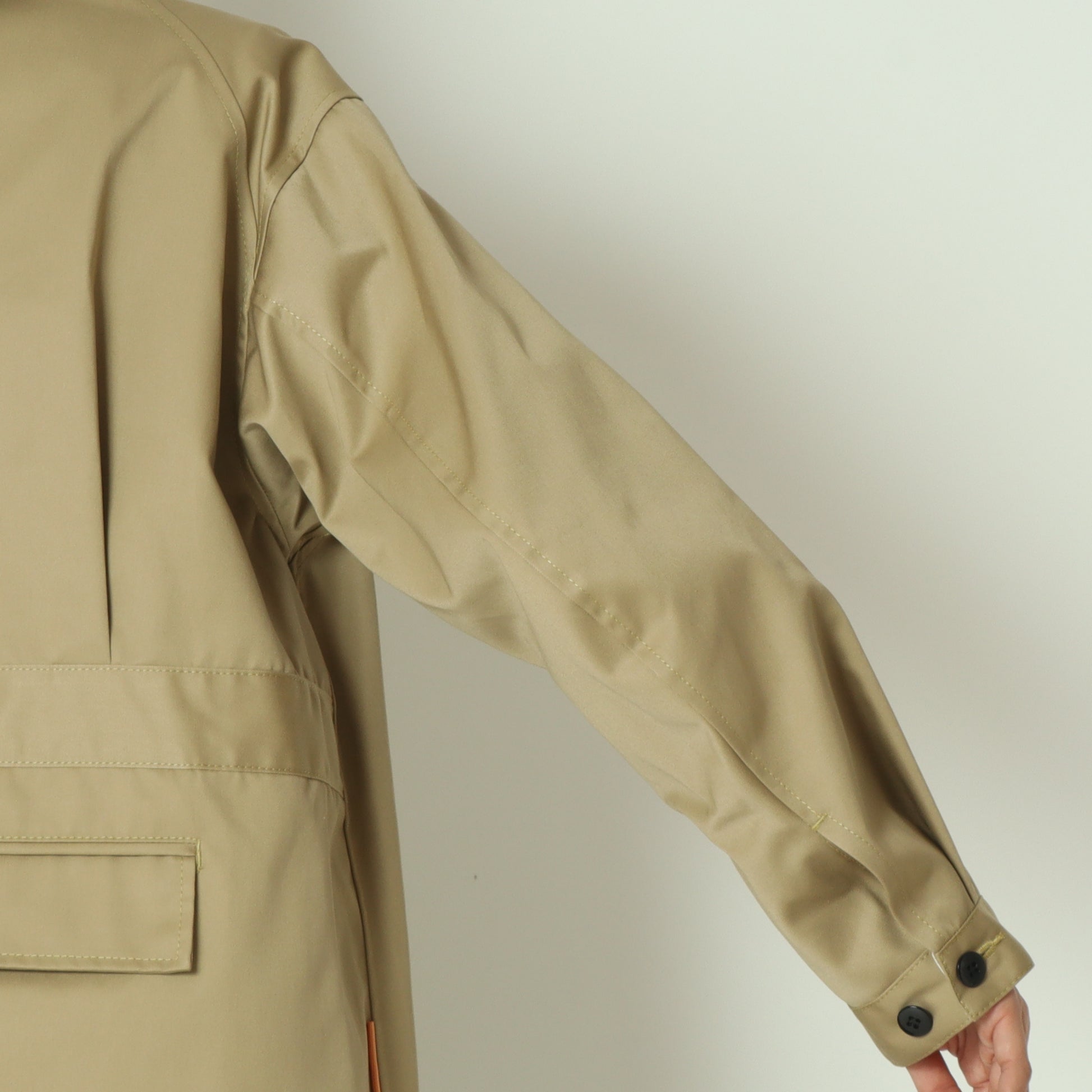 袖は立体的なデザインで、袖口のボタン位置を調整することでシルエットをすっきりと変化させることが可能です。