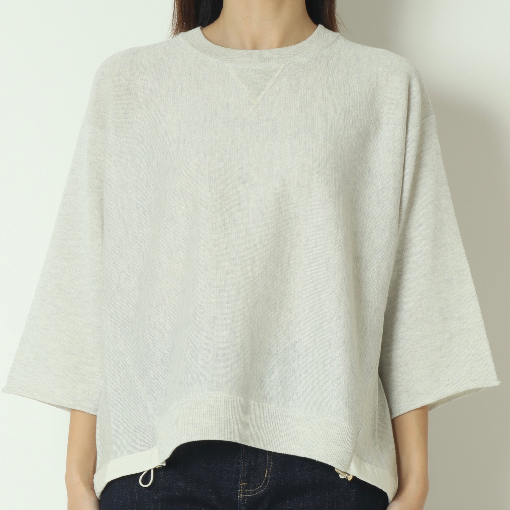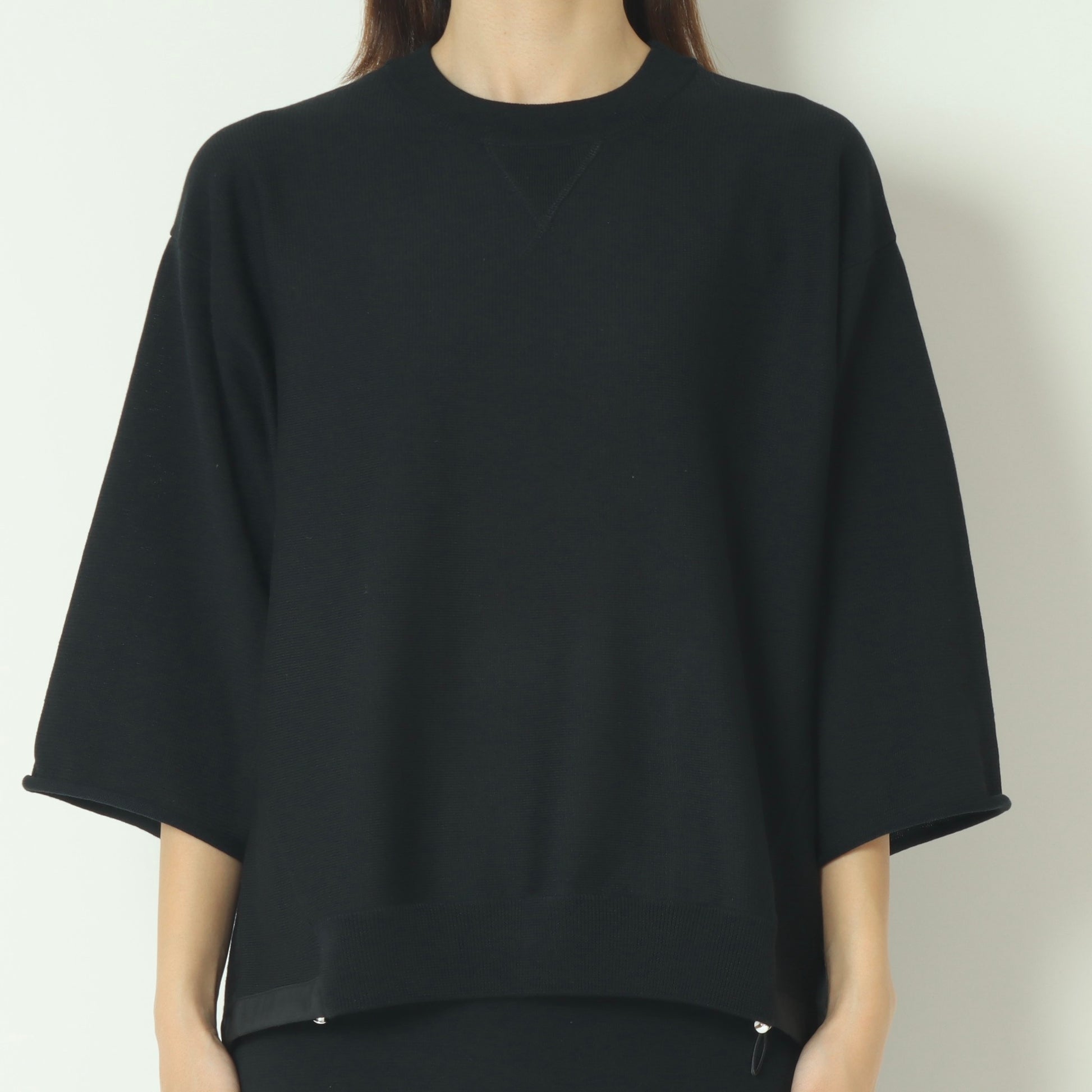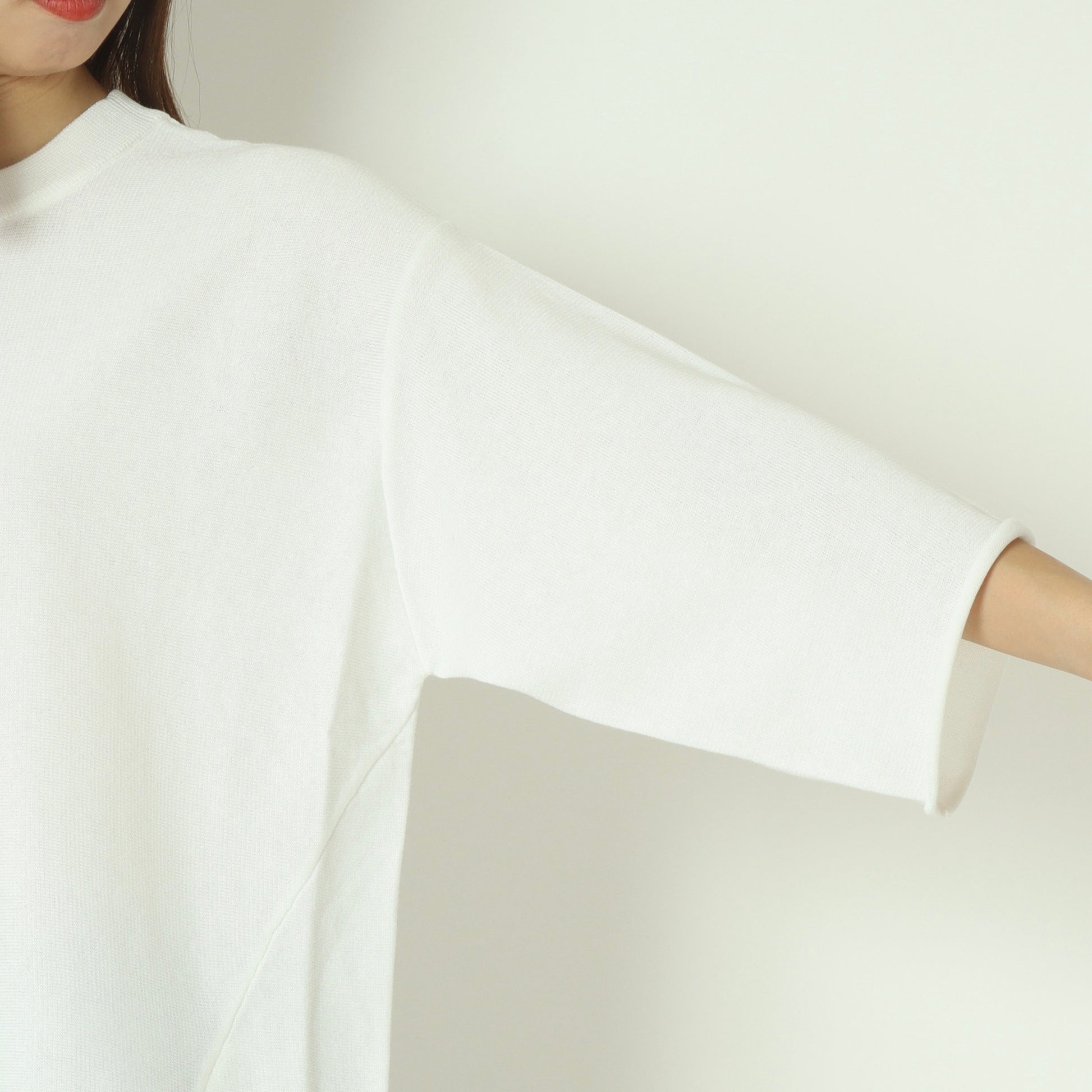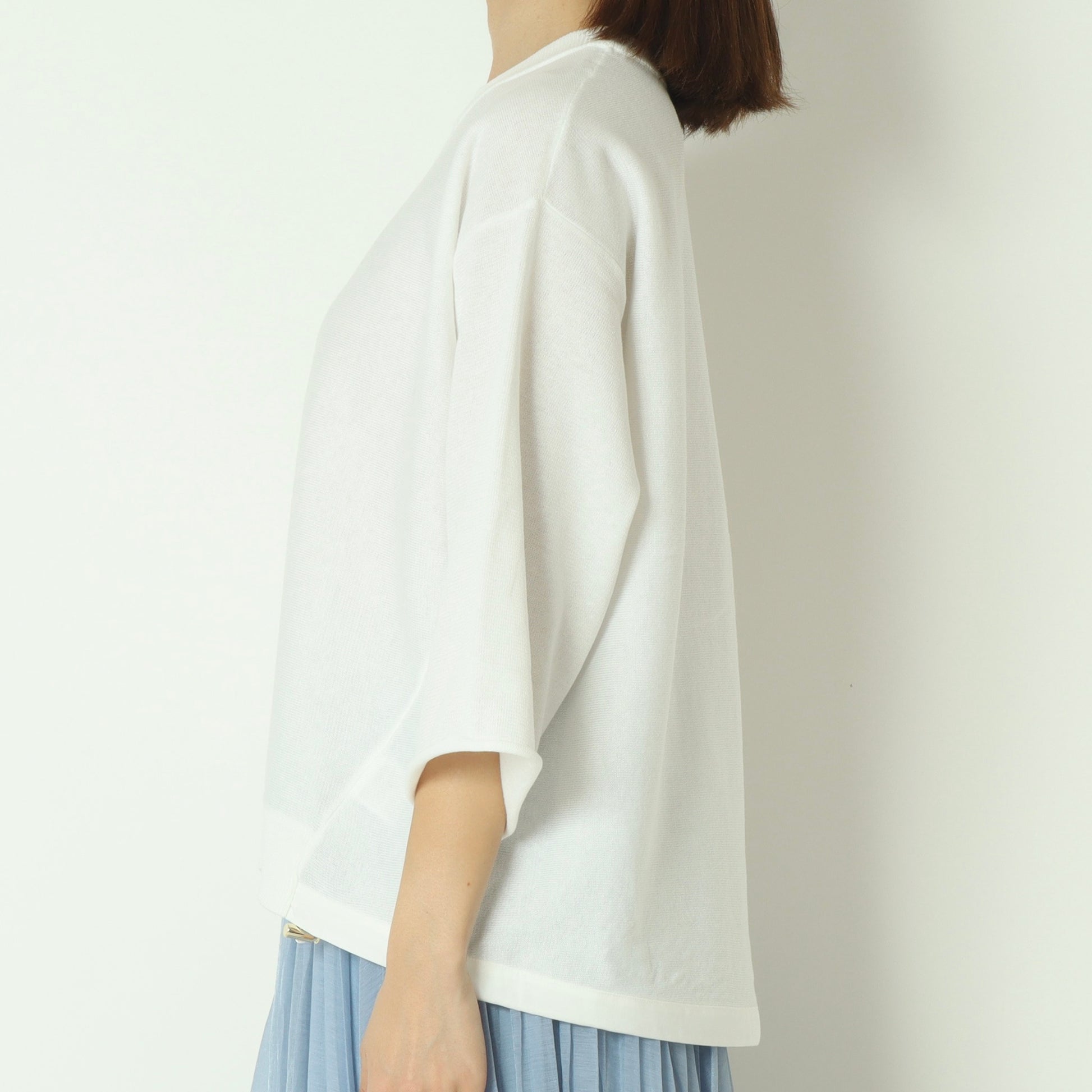 ゆったりとしたシルエットが特徴的なハーフスリーブのニットプルオーバー。