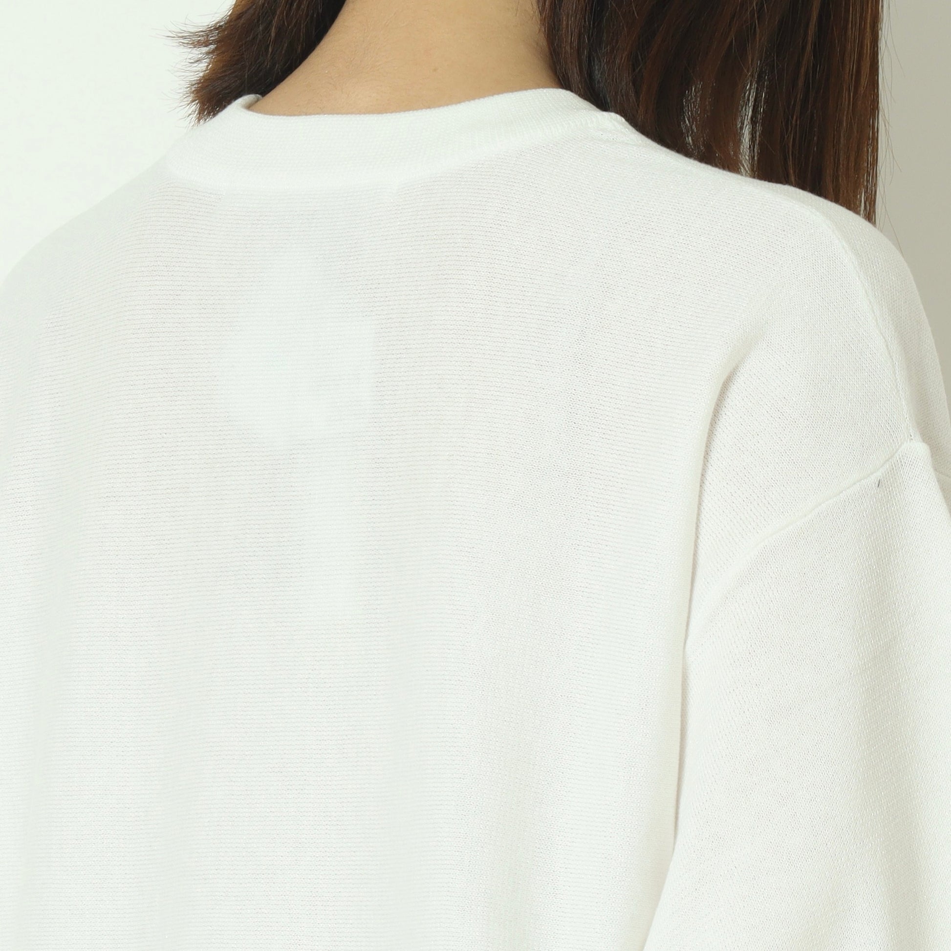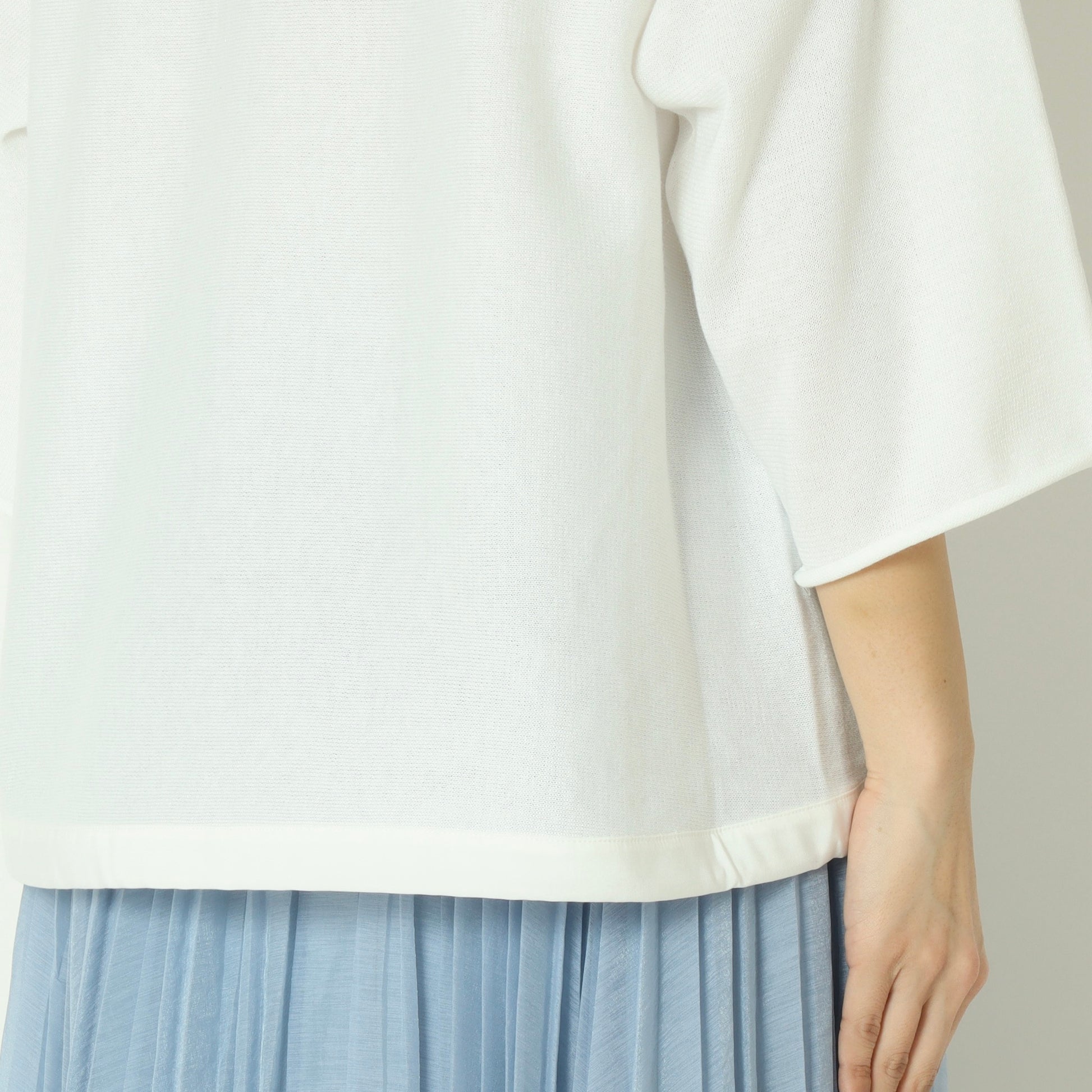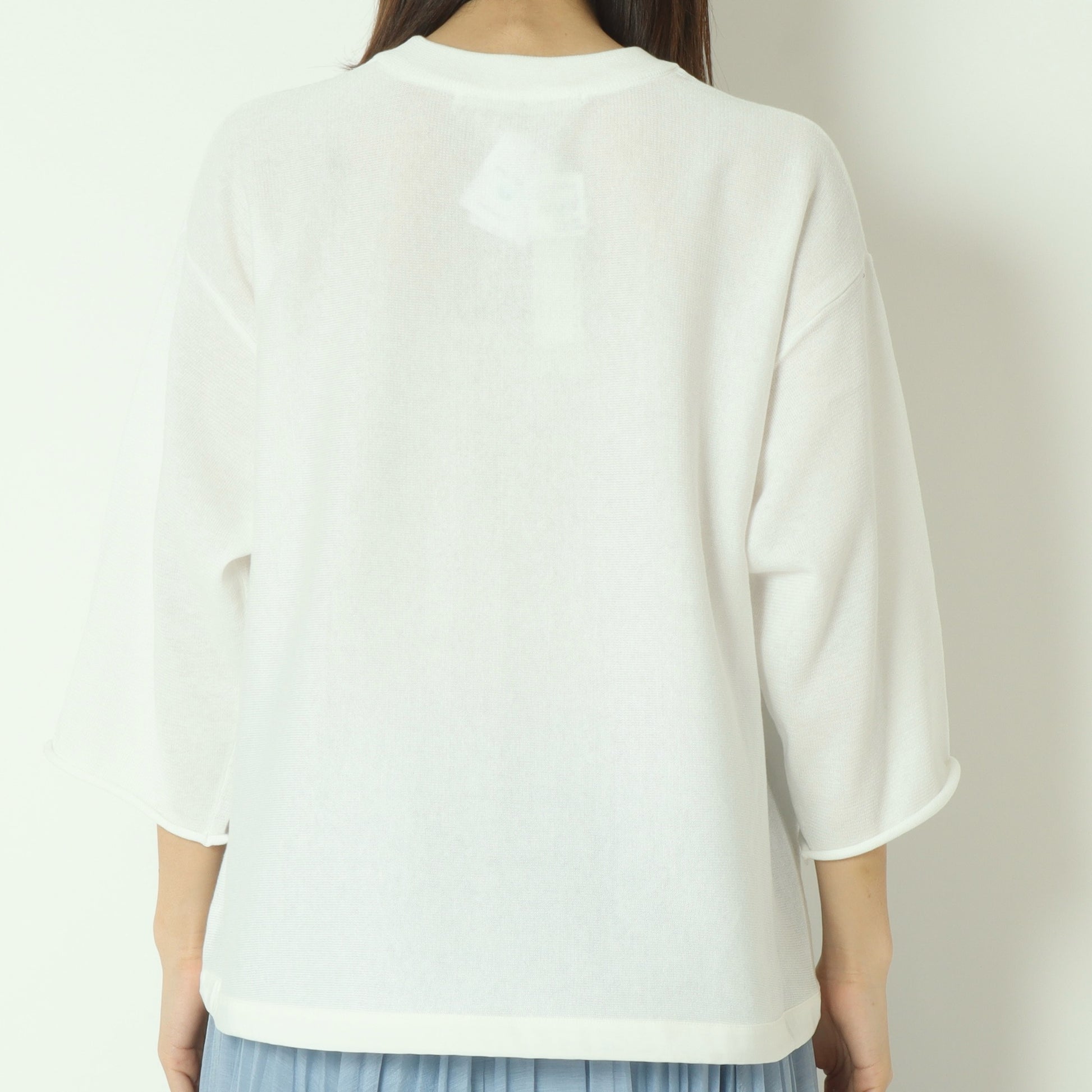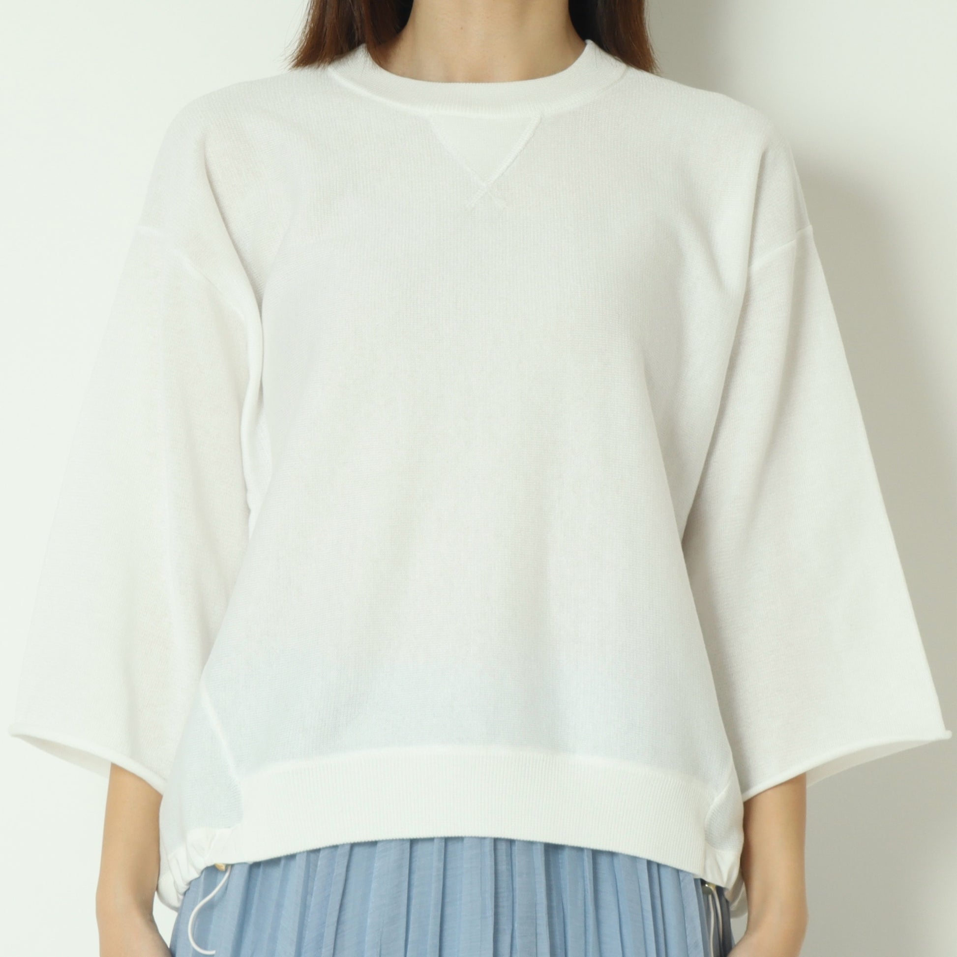 ゆったりとしたシルエットが特徴的なハーフスリーブのニットプルオーバー。