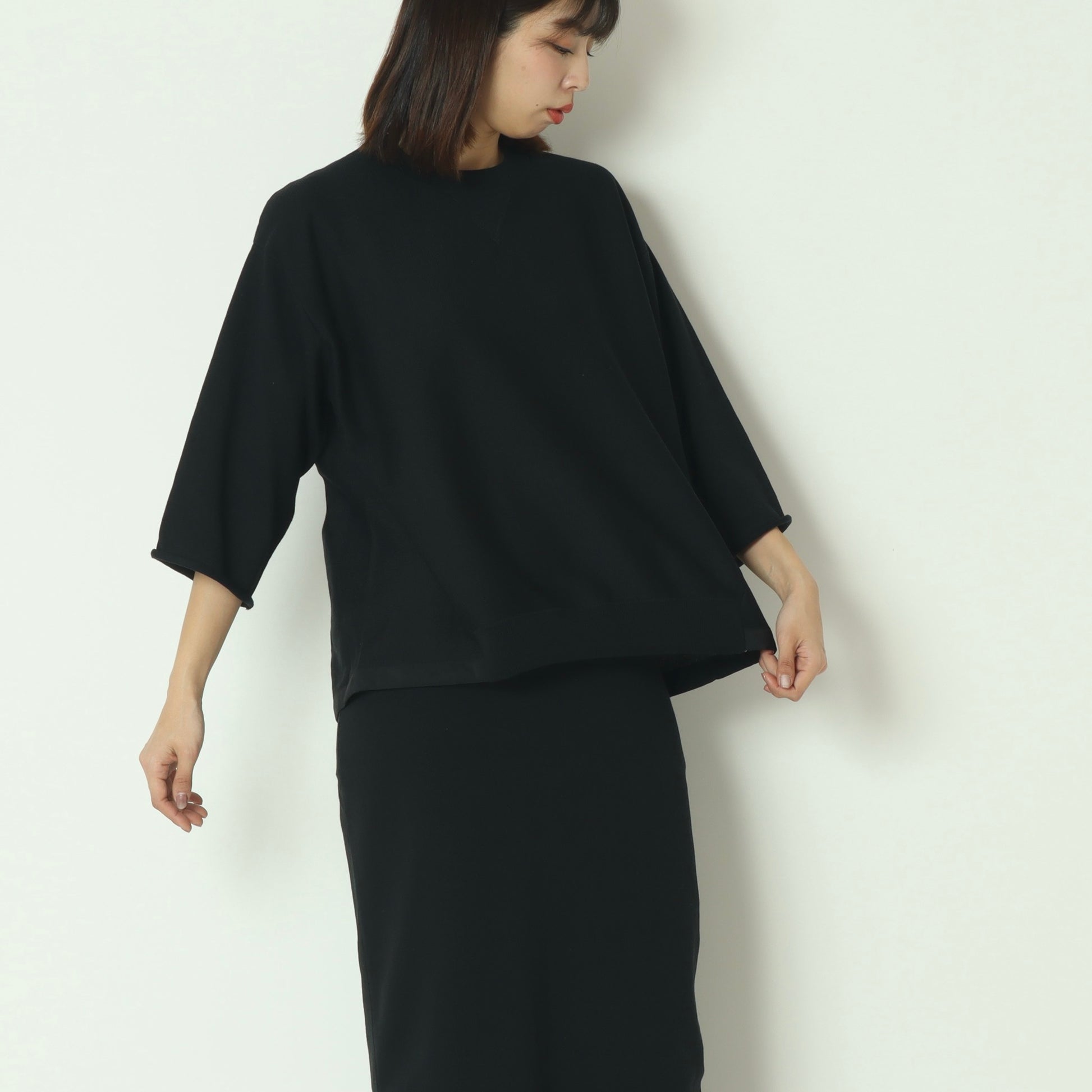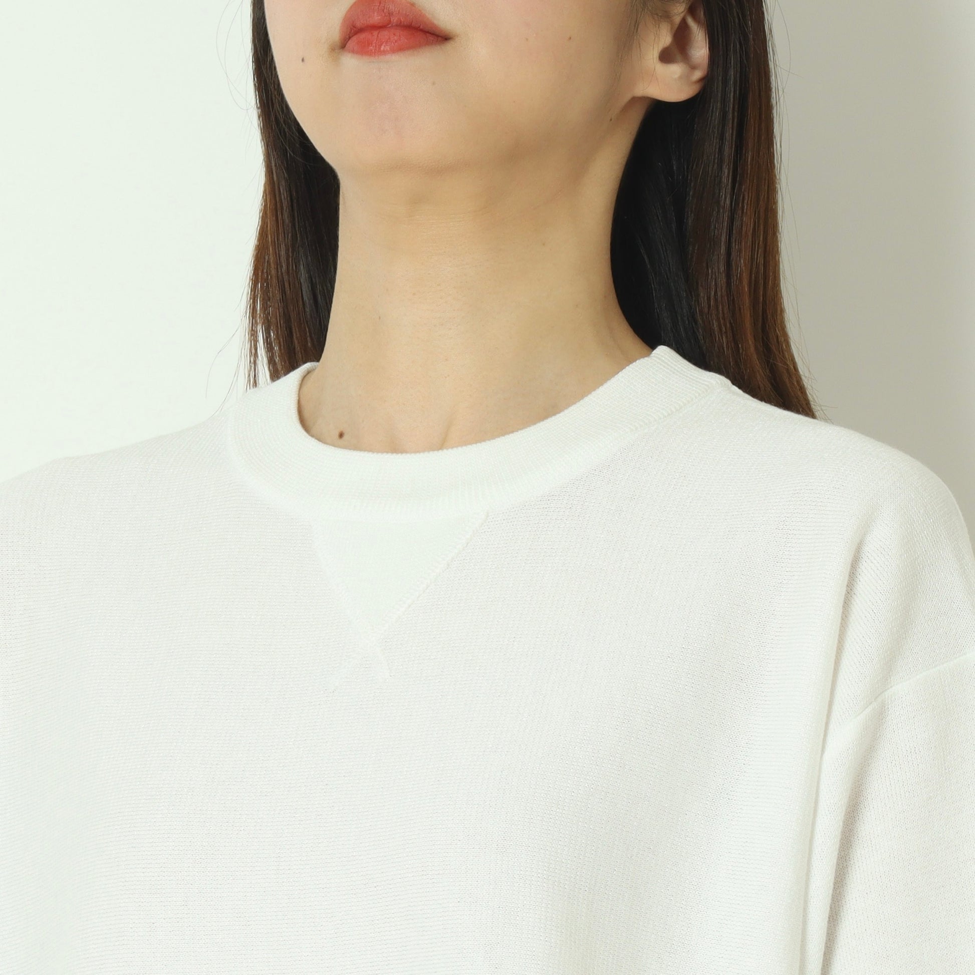 首元のV字のガゼットや、切りっぱなしのような袖口、裾のリブ使いなど、ヴィンテージのスウェットシャツのディテールを取り入れたデザインになっています。