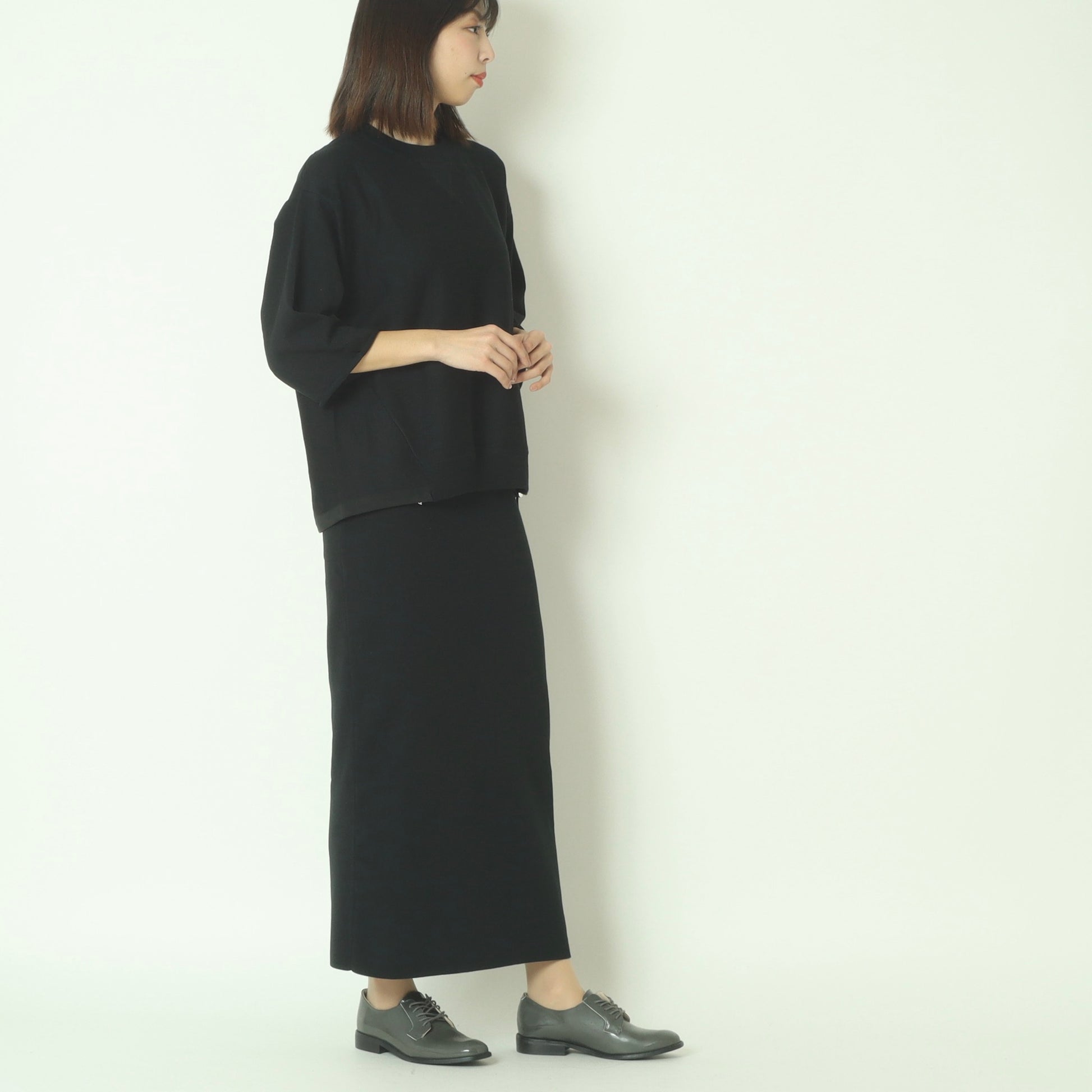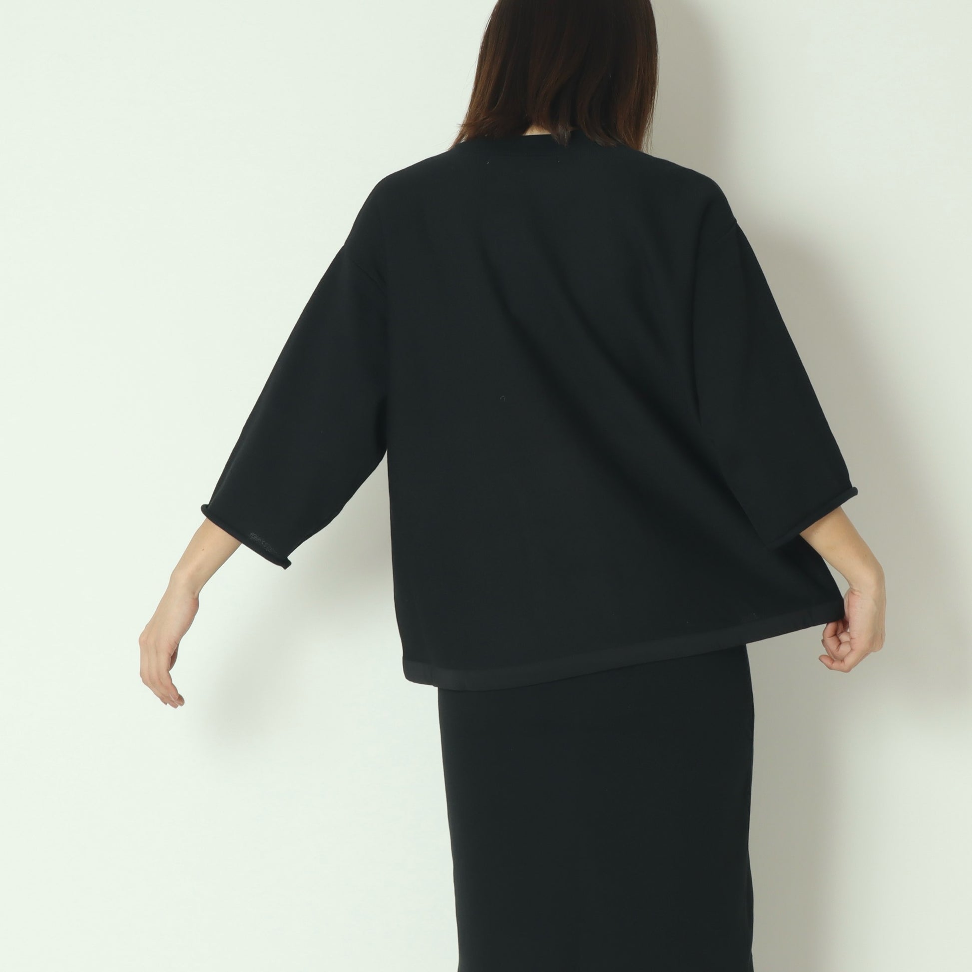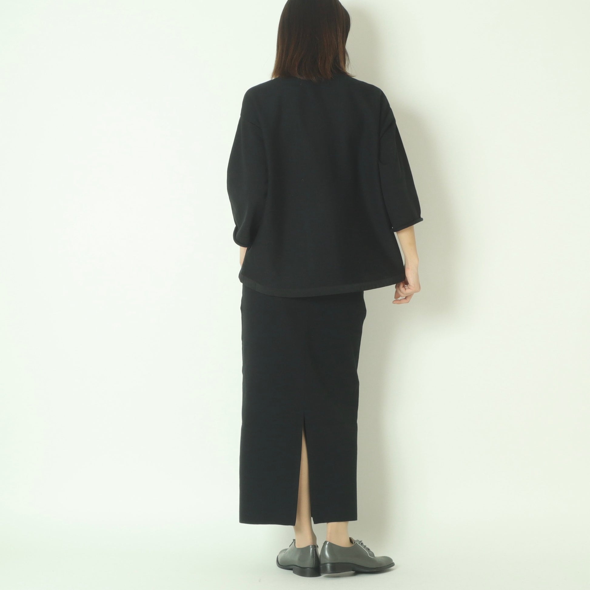 同素材のスカート(261-189-0033)とのセットアップ着用も可能ですが、単品使いでもパンツ、スカート問わず合わせやすいアイテムなので着回し力抜群です。