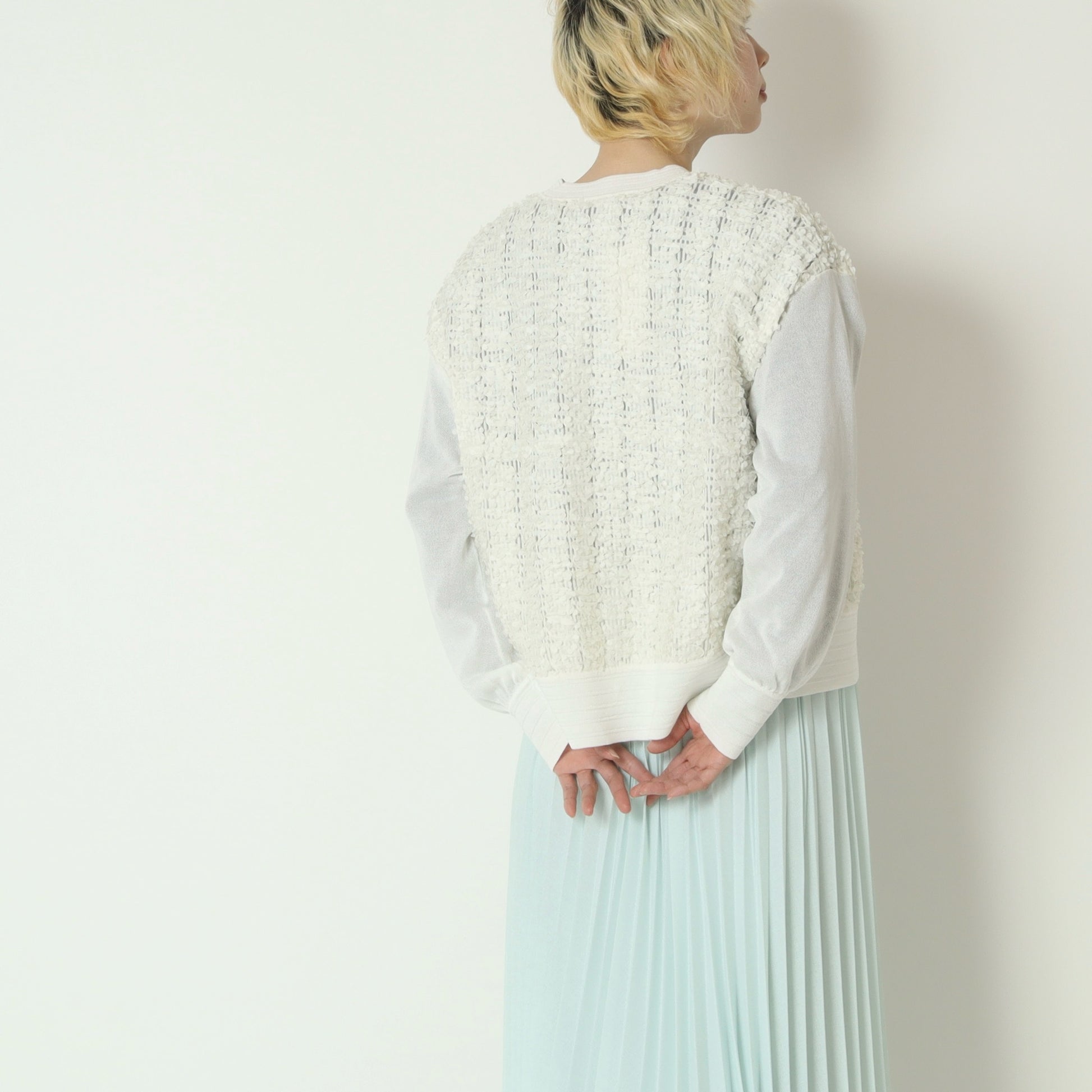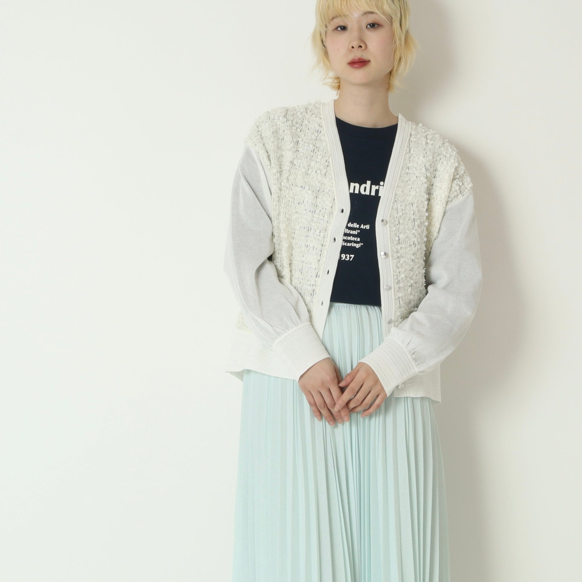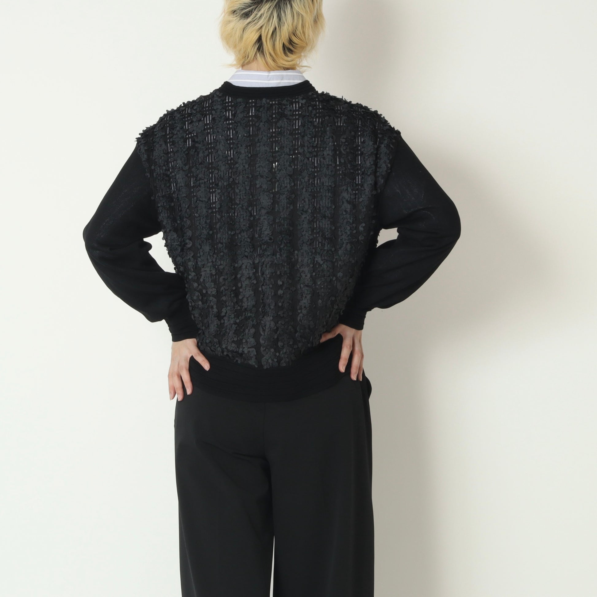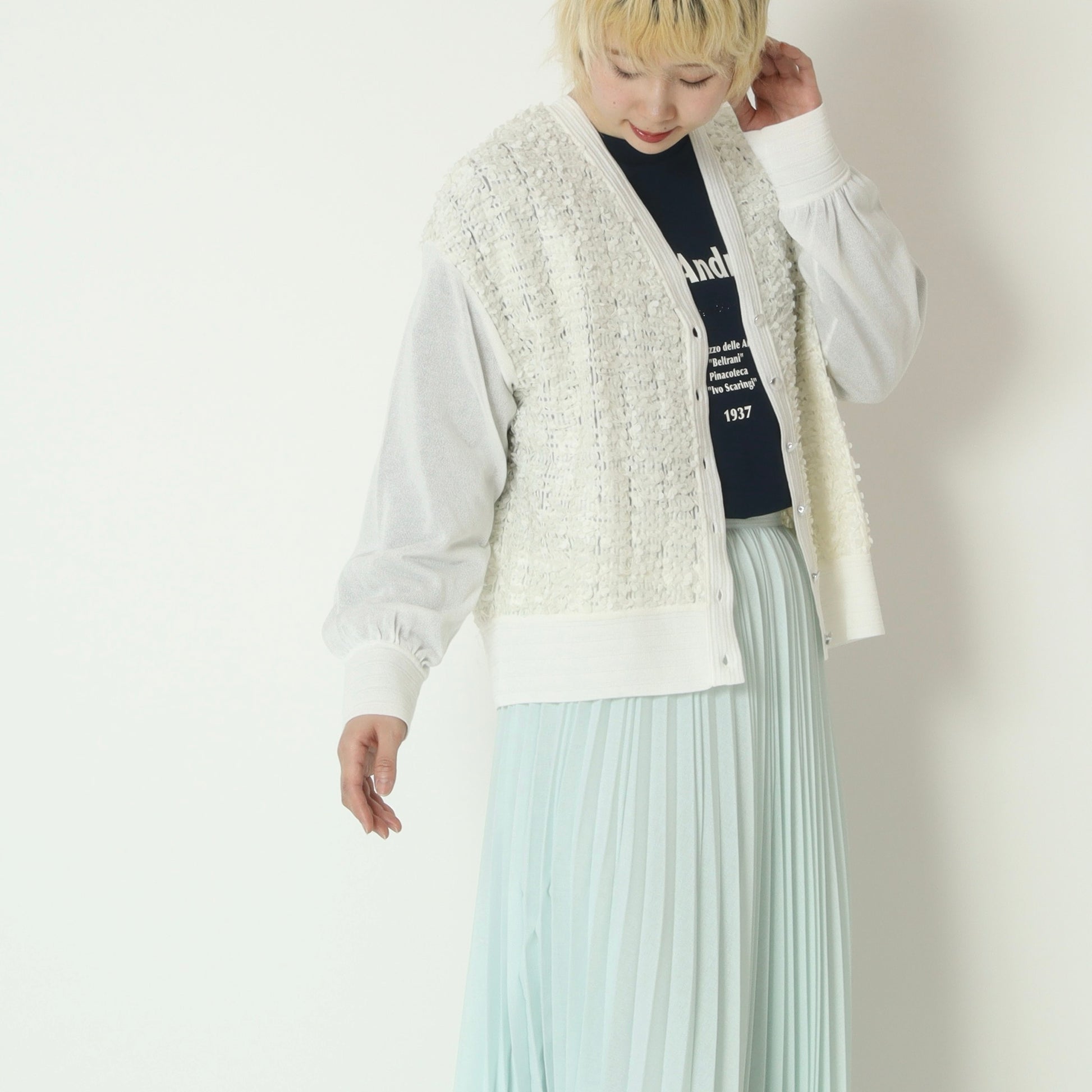 さりげない透け感と立体感が、一枚でも着映えする主役級アイテムです。