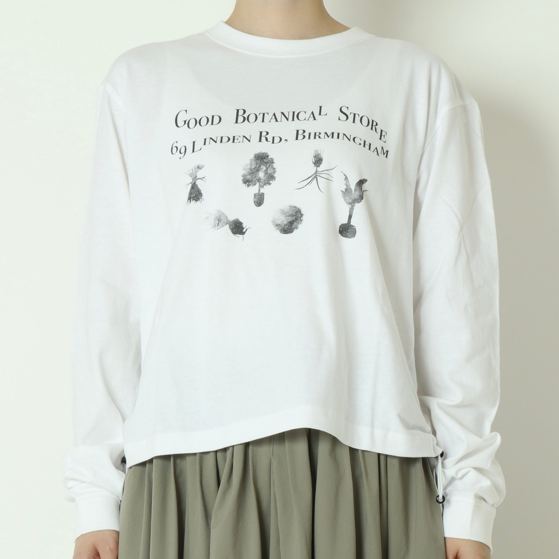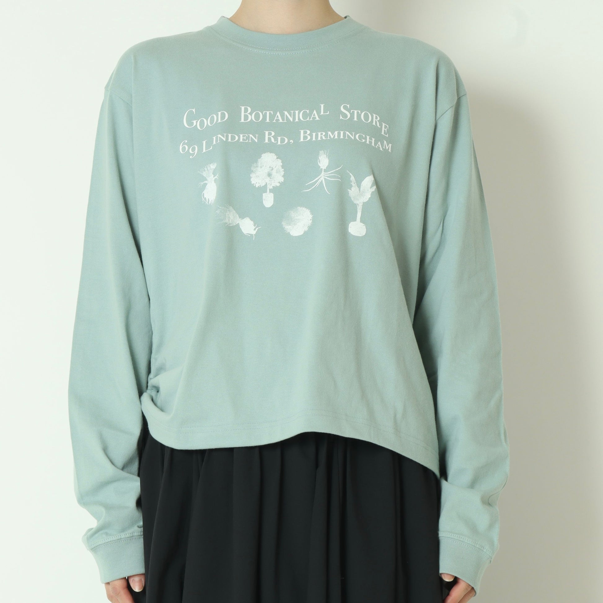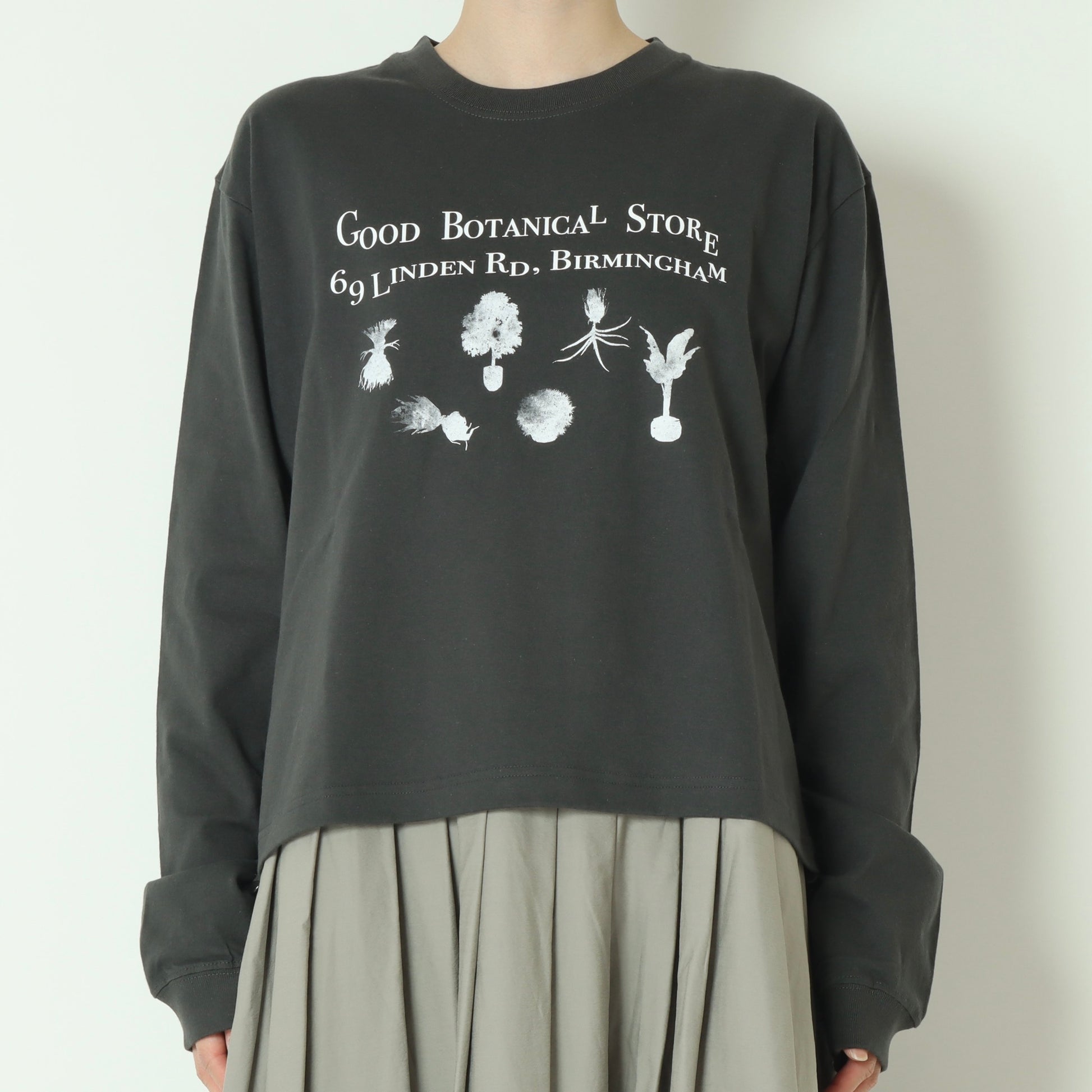 架空のボタニカルショップをモチーフとしたデザインプリントの長袖カットソー。