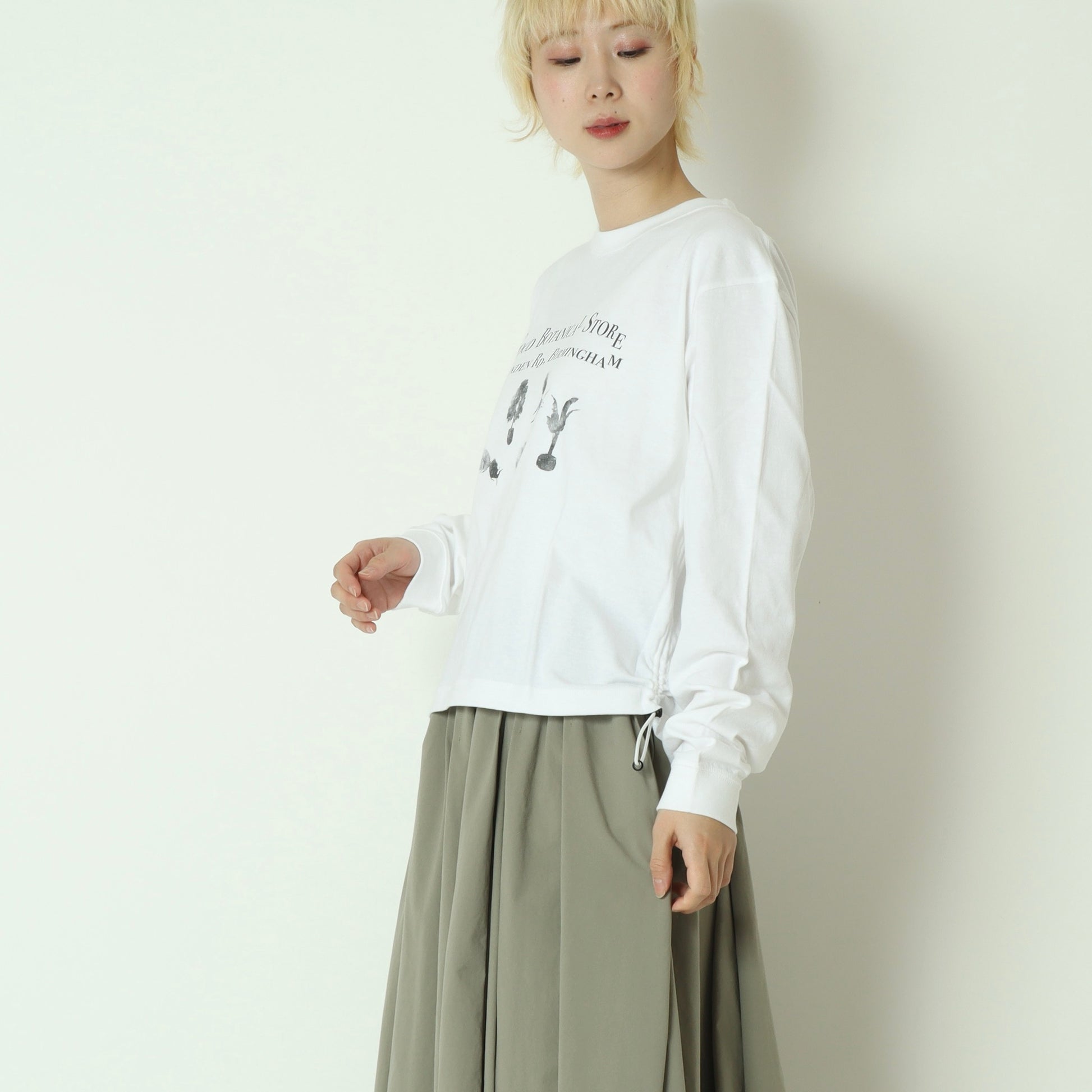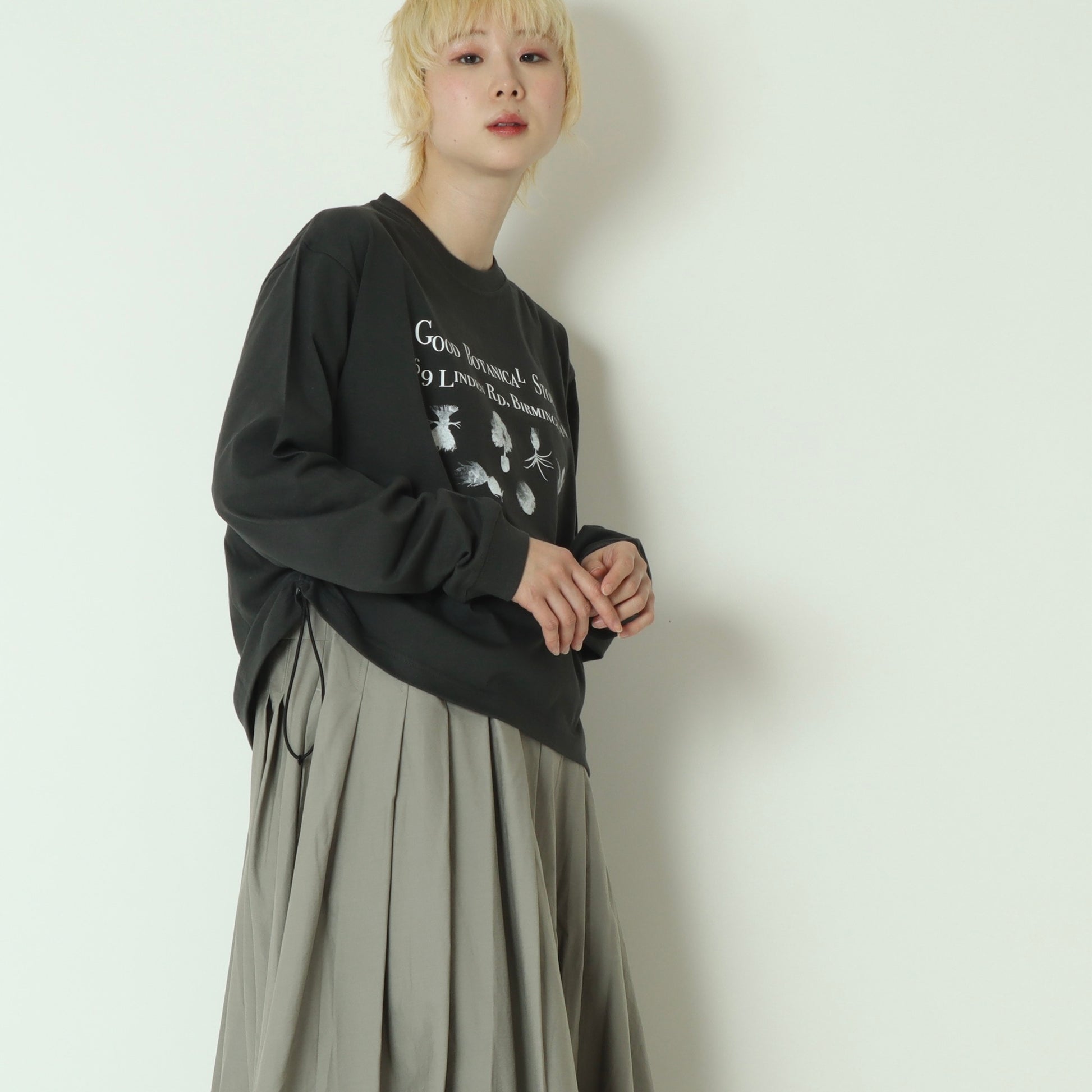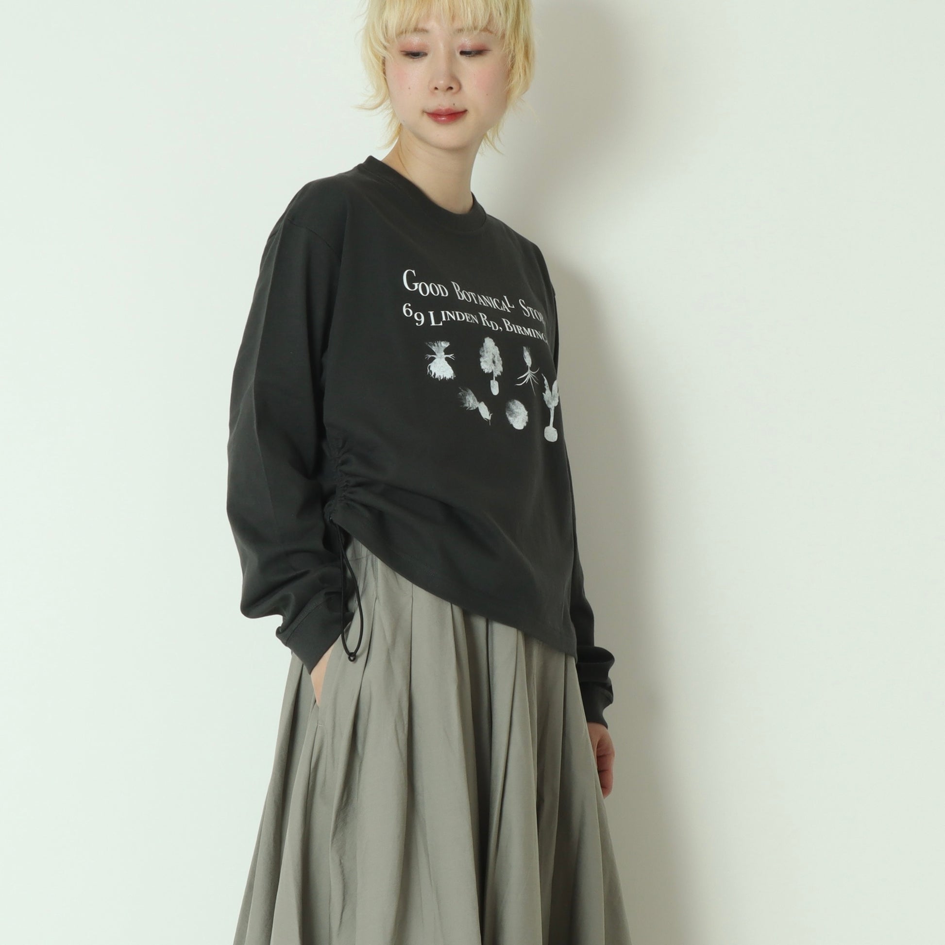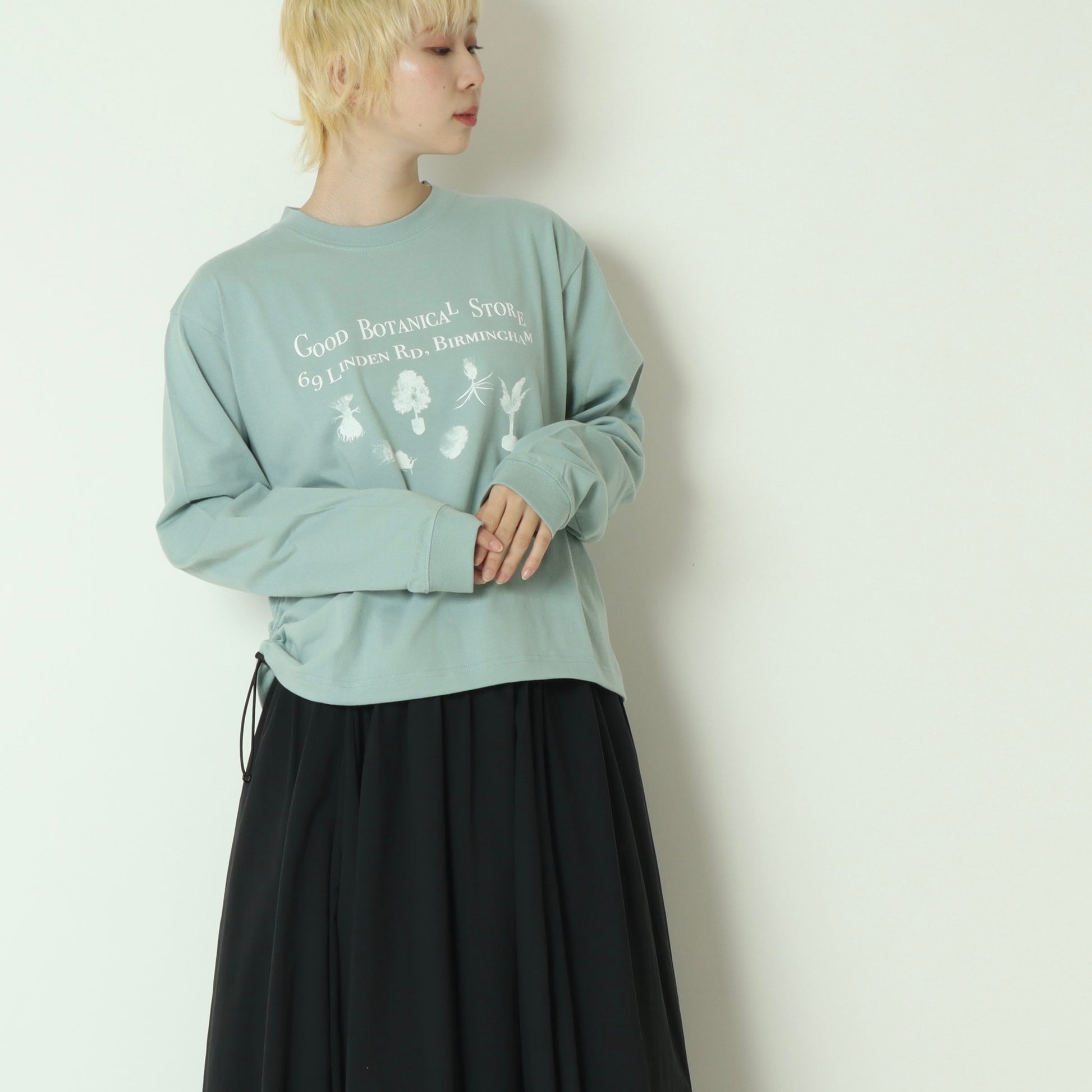 架空のボタニカルショップをモチーフとしたデザインプリントの長袖カットソー。