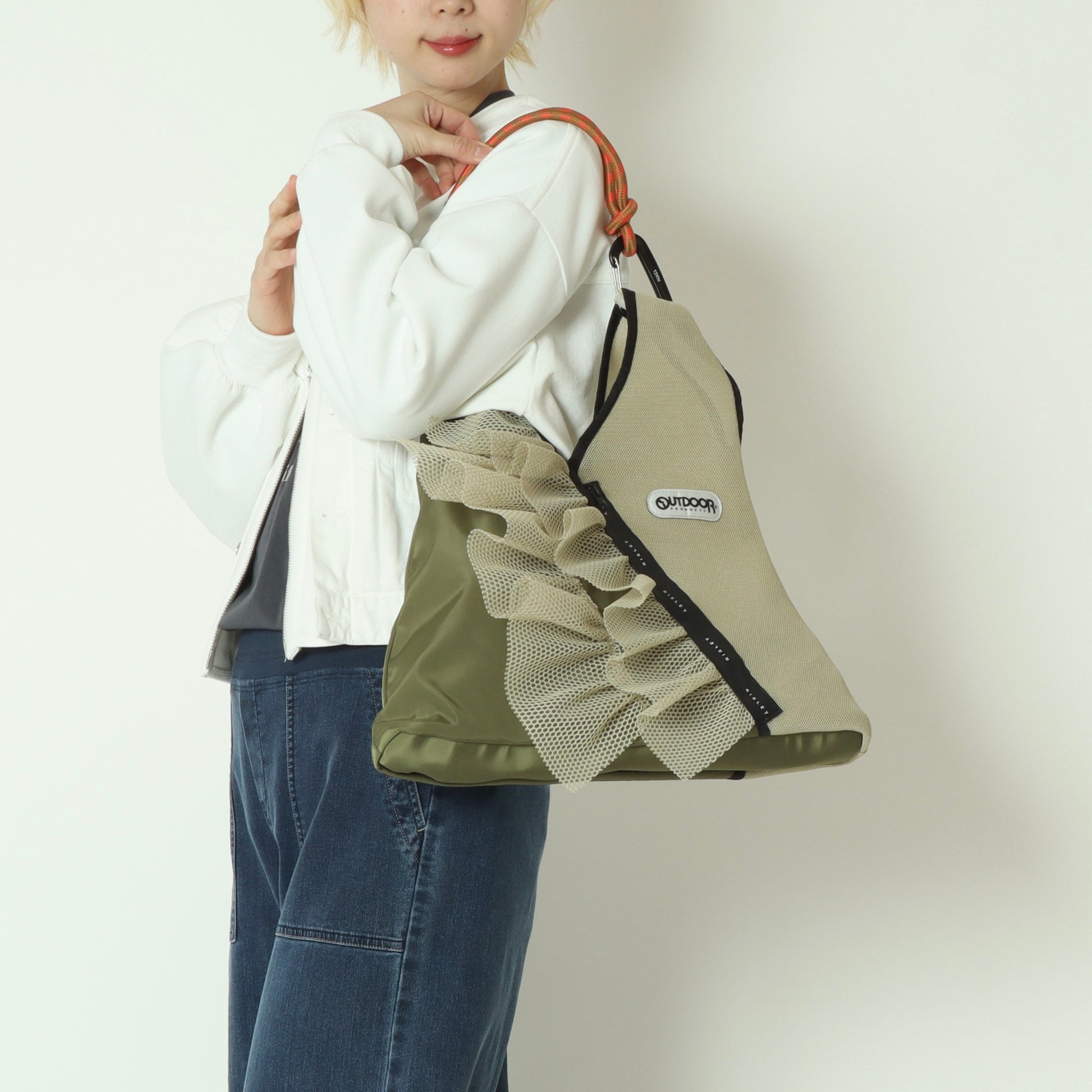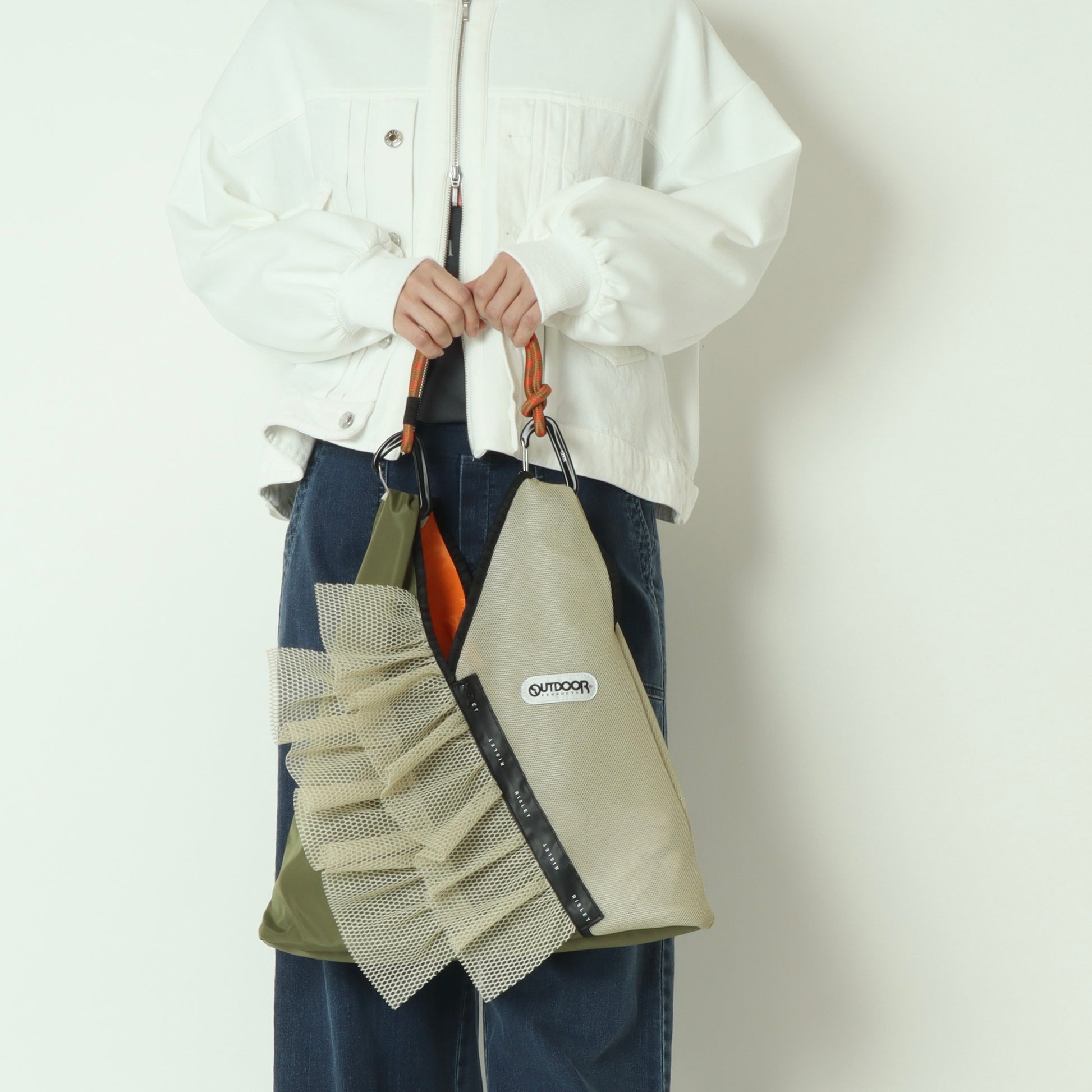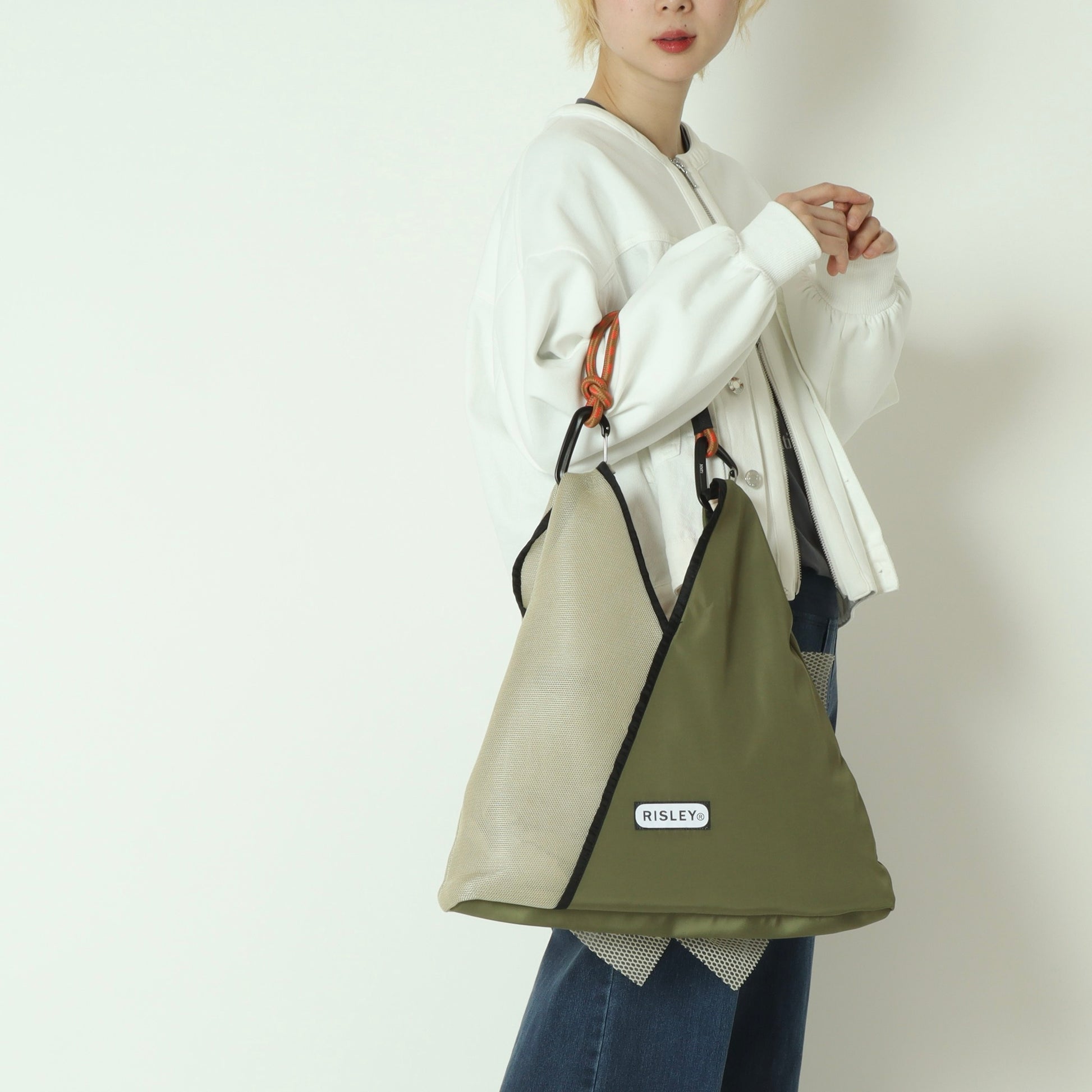 カラビナを残し、持ち手のロープだけを他のストラップに付けかえて斜め掛けバックにすることも可能でアレンジを楽しめます。