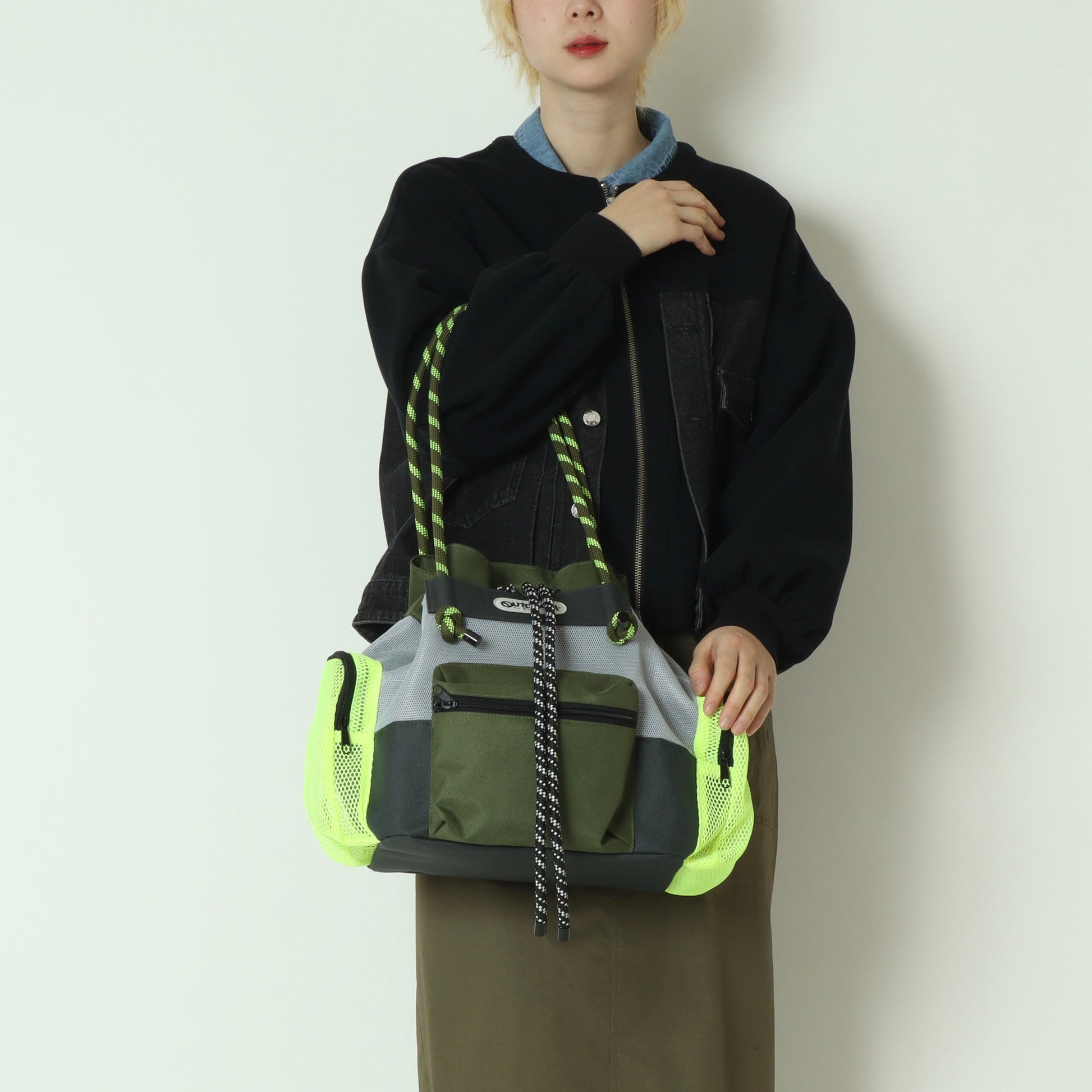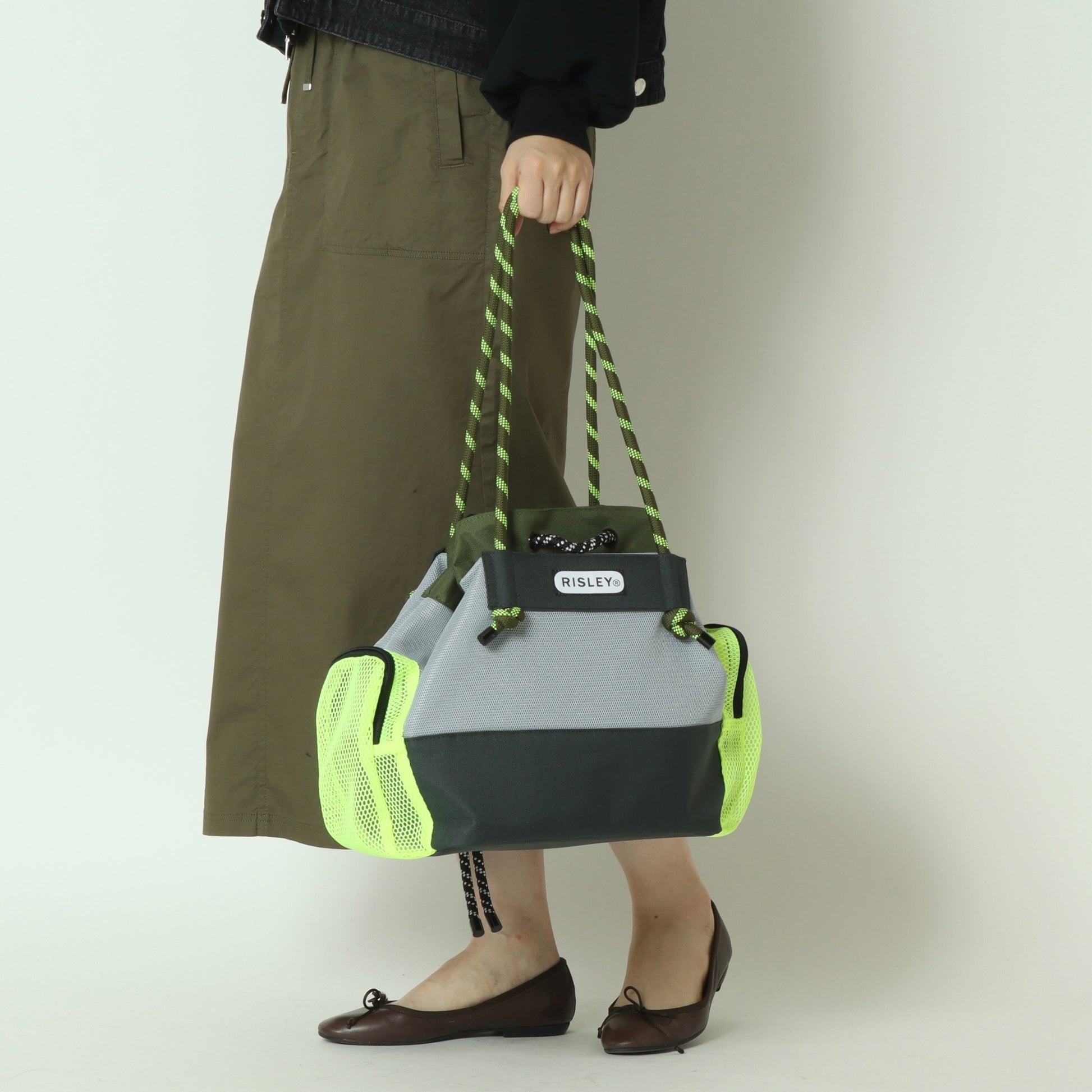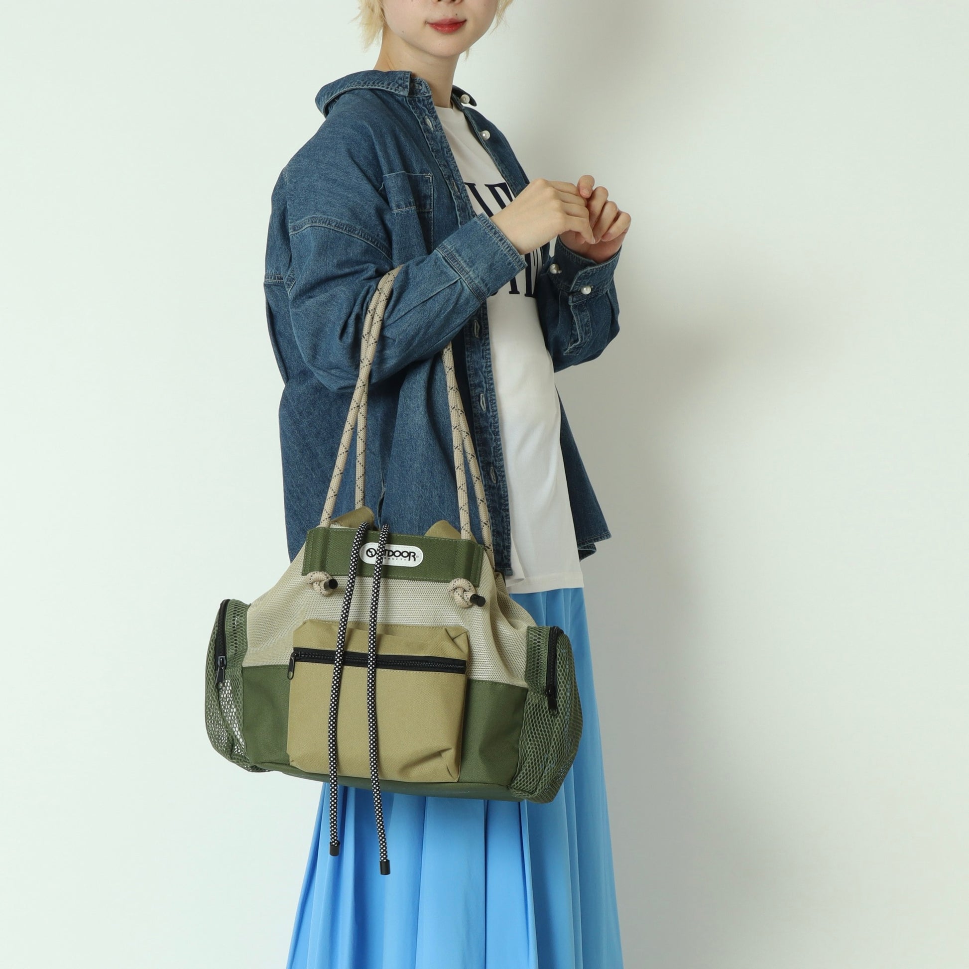 巾着型にキュッと絞ることが可能で、フォルムの変化をお楽しみいただけます。
