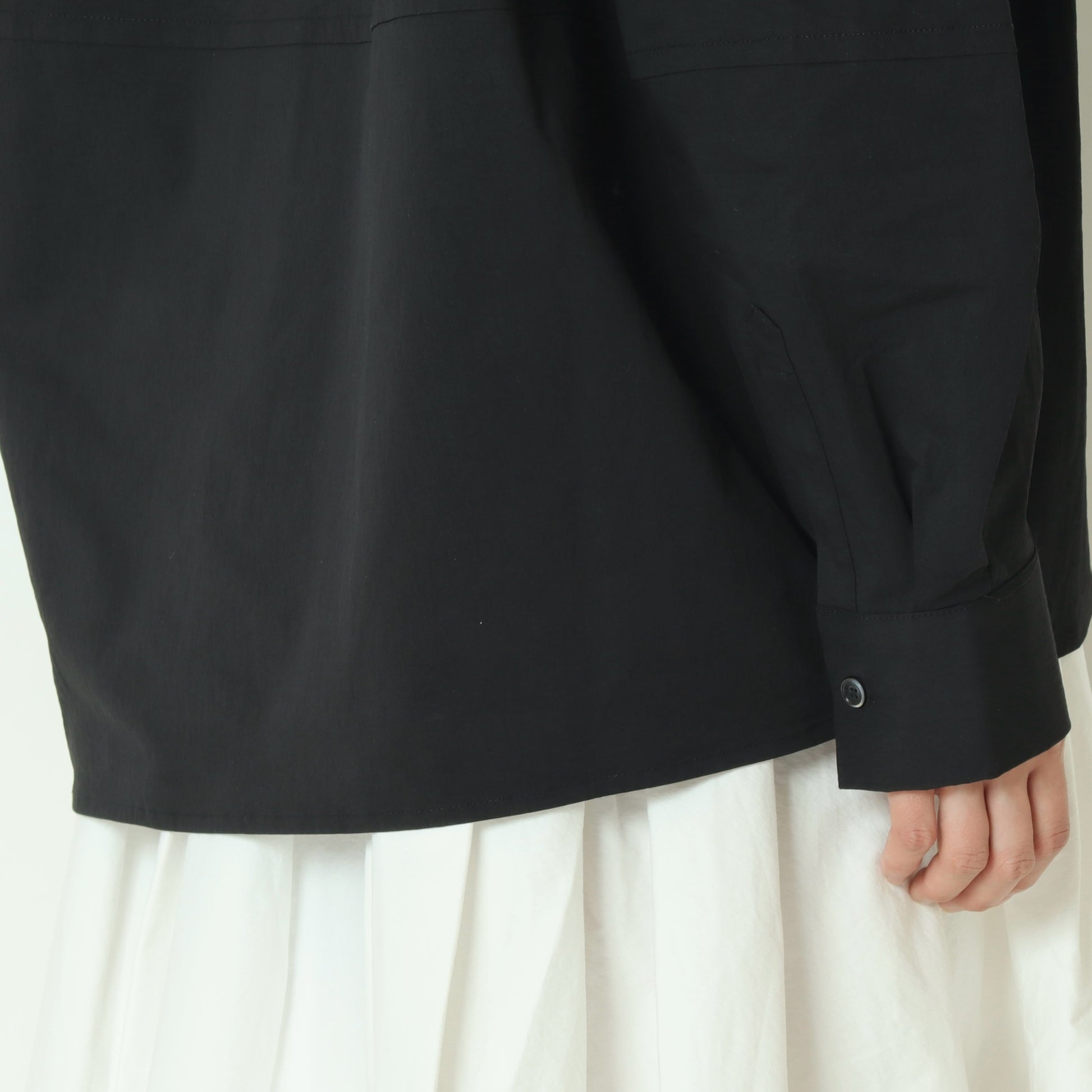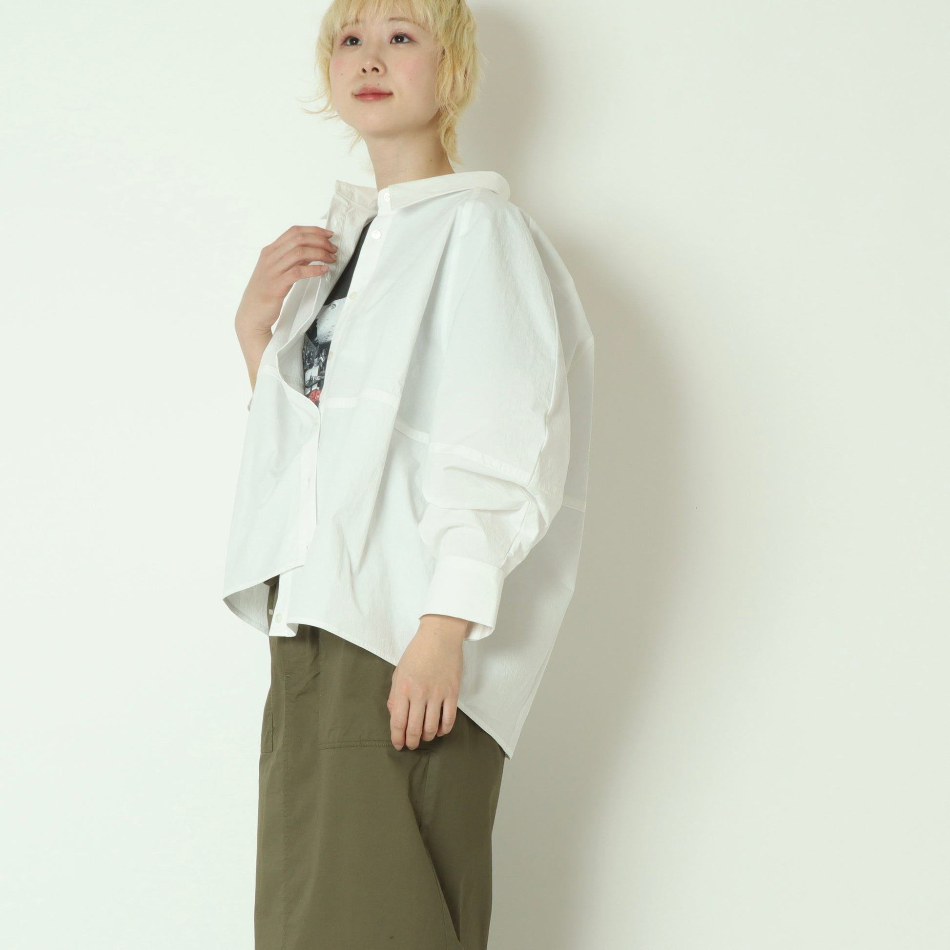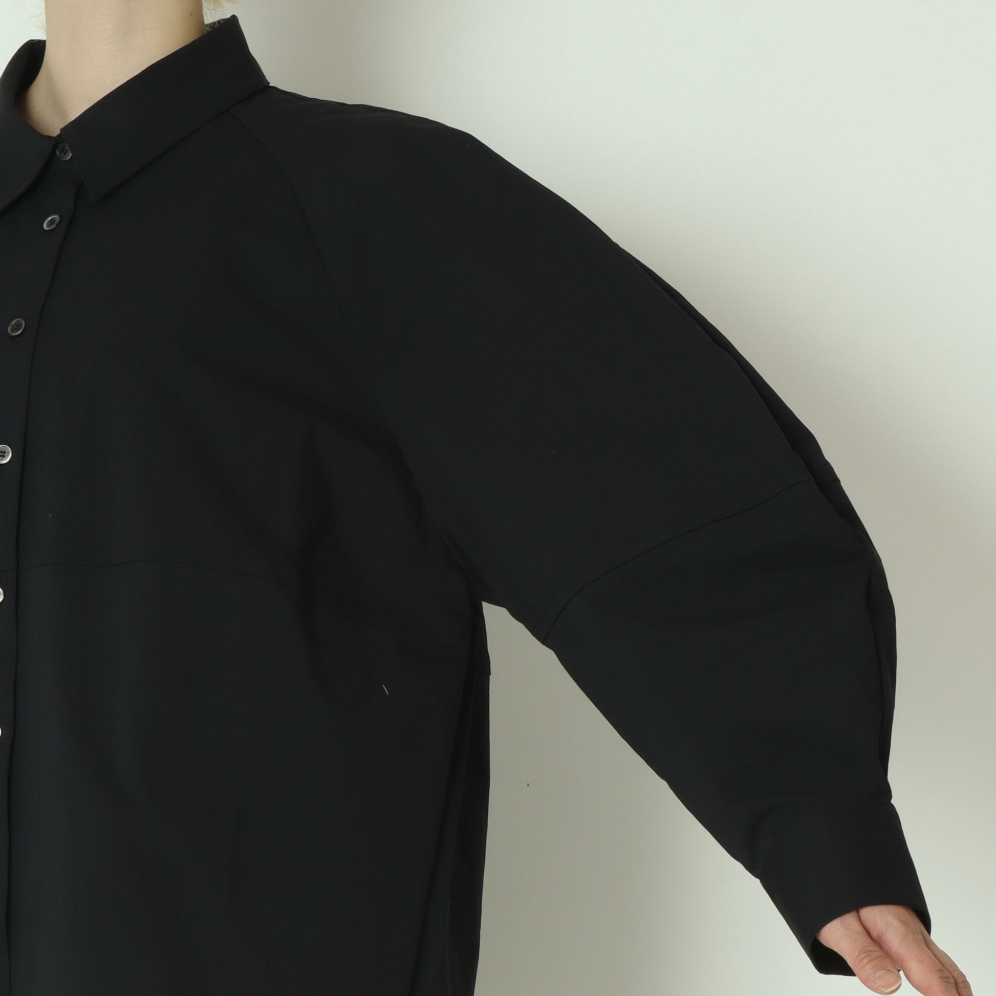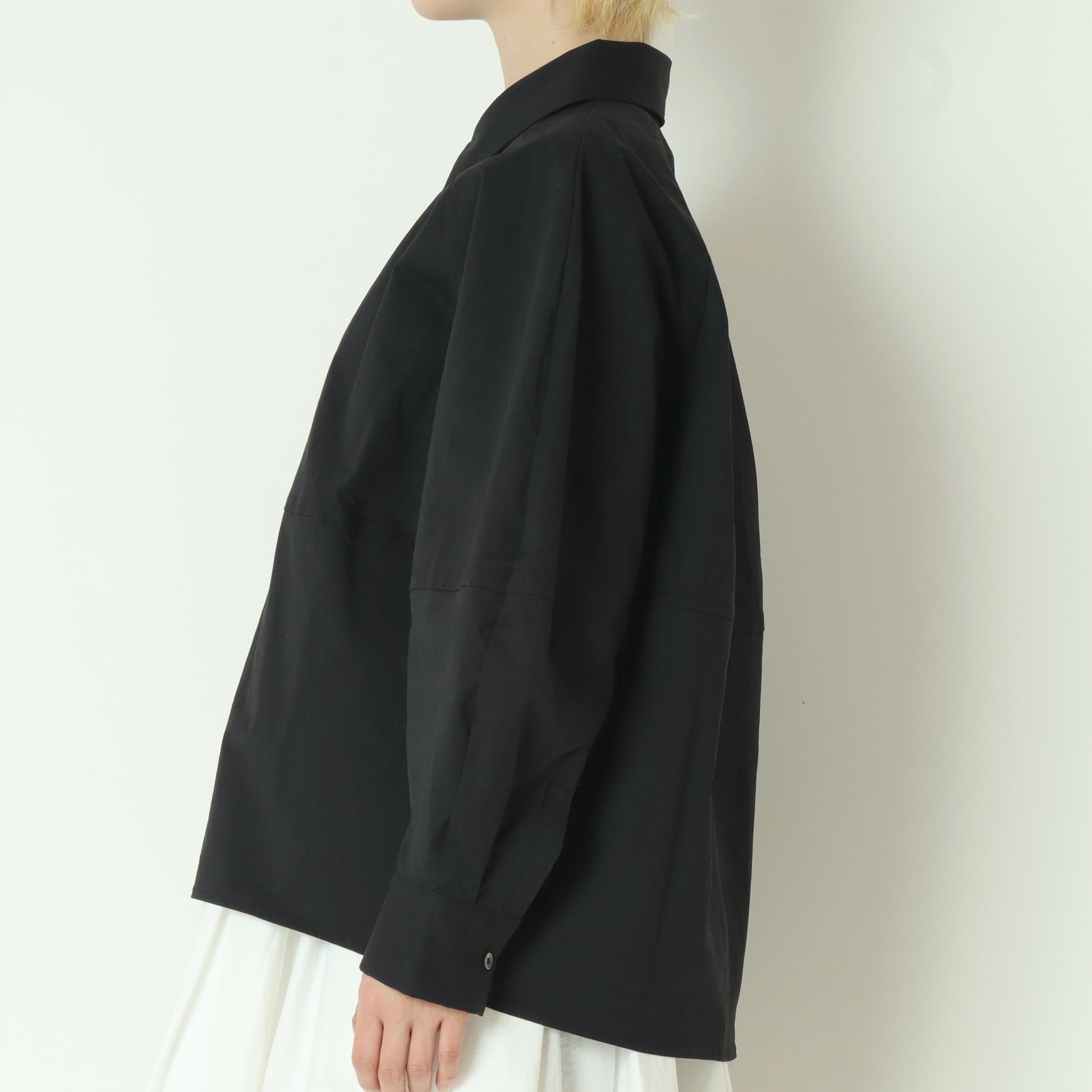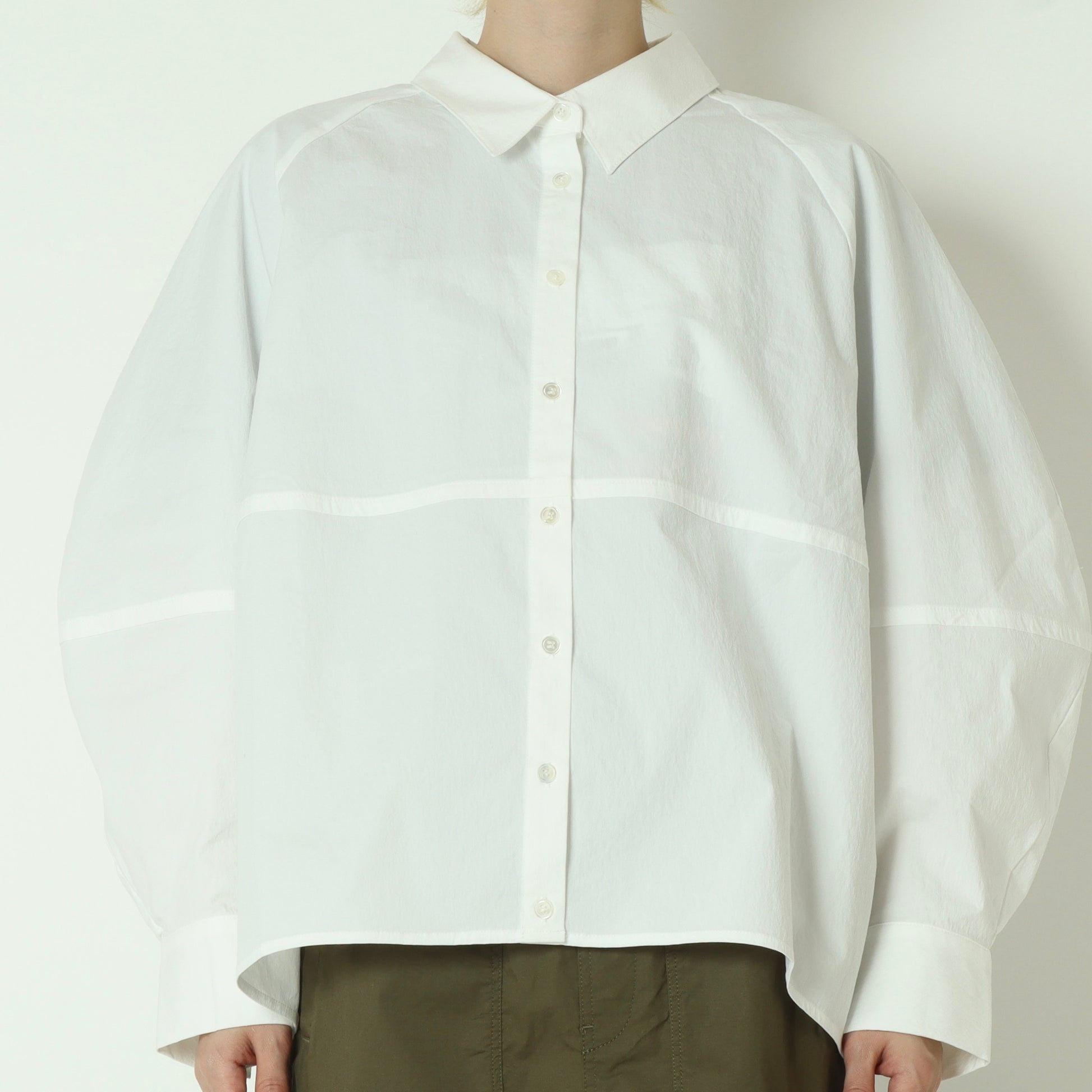 構築的なパターンで作るボリューム袖のオーバーサイズシャツ。