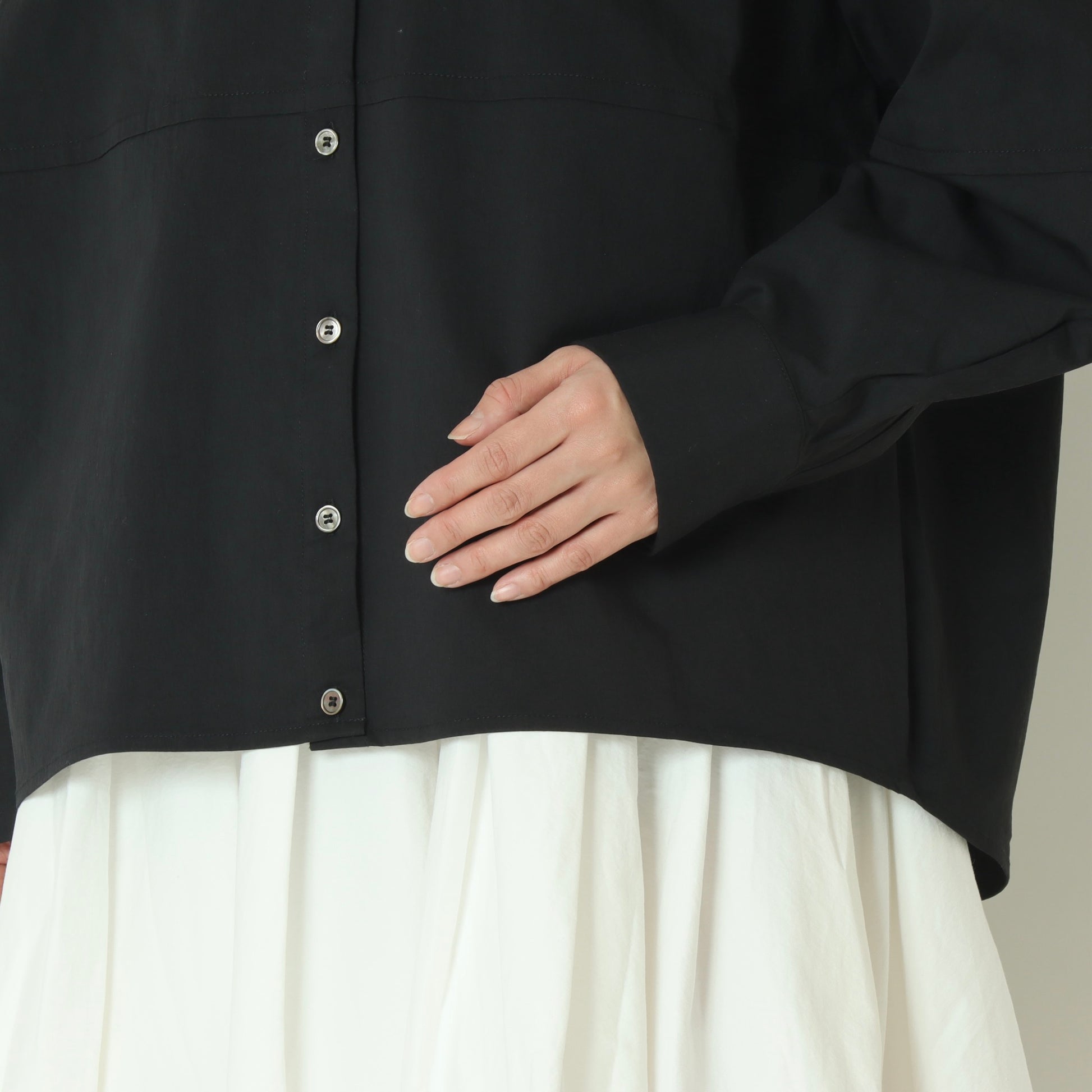 ハリ感があって型崩れしにくいドライタッチなシャツ生地を使用。